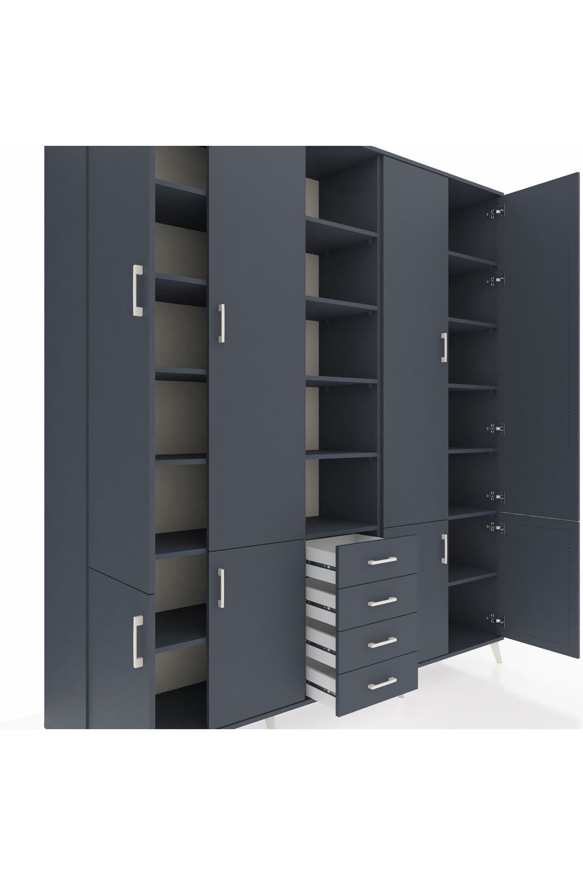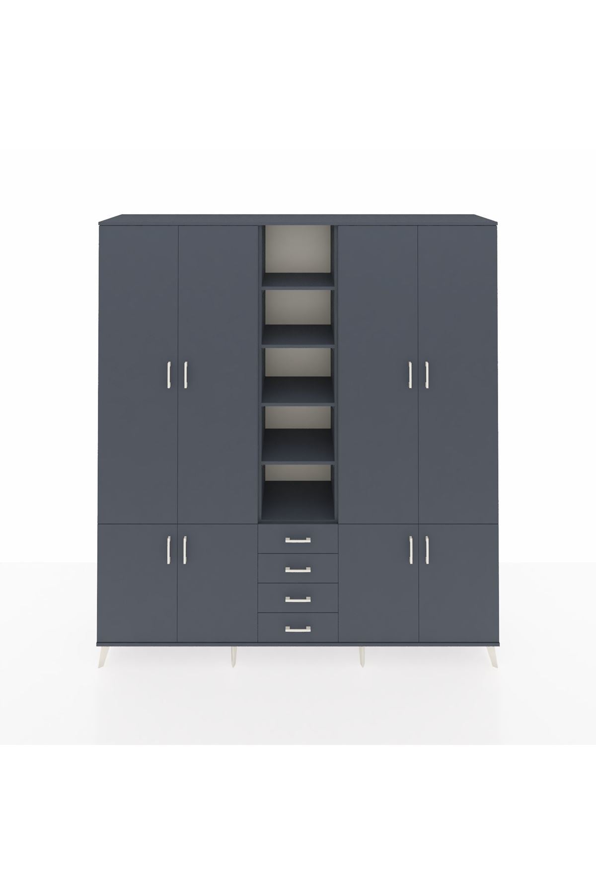Hyperion Dolap 17 Raflı 4 Çekmeceli 8 Kapaklı 220x44x243 Antrasit-Antrasit/Antrasit