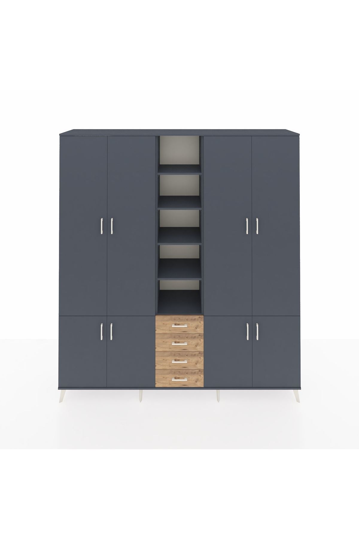 Hyperion Dolap 17 Raflı 4 Çekmeceli 8 Kapaklı 220x44x243 Antrasit-Antrasit/Çam