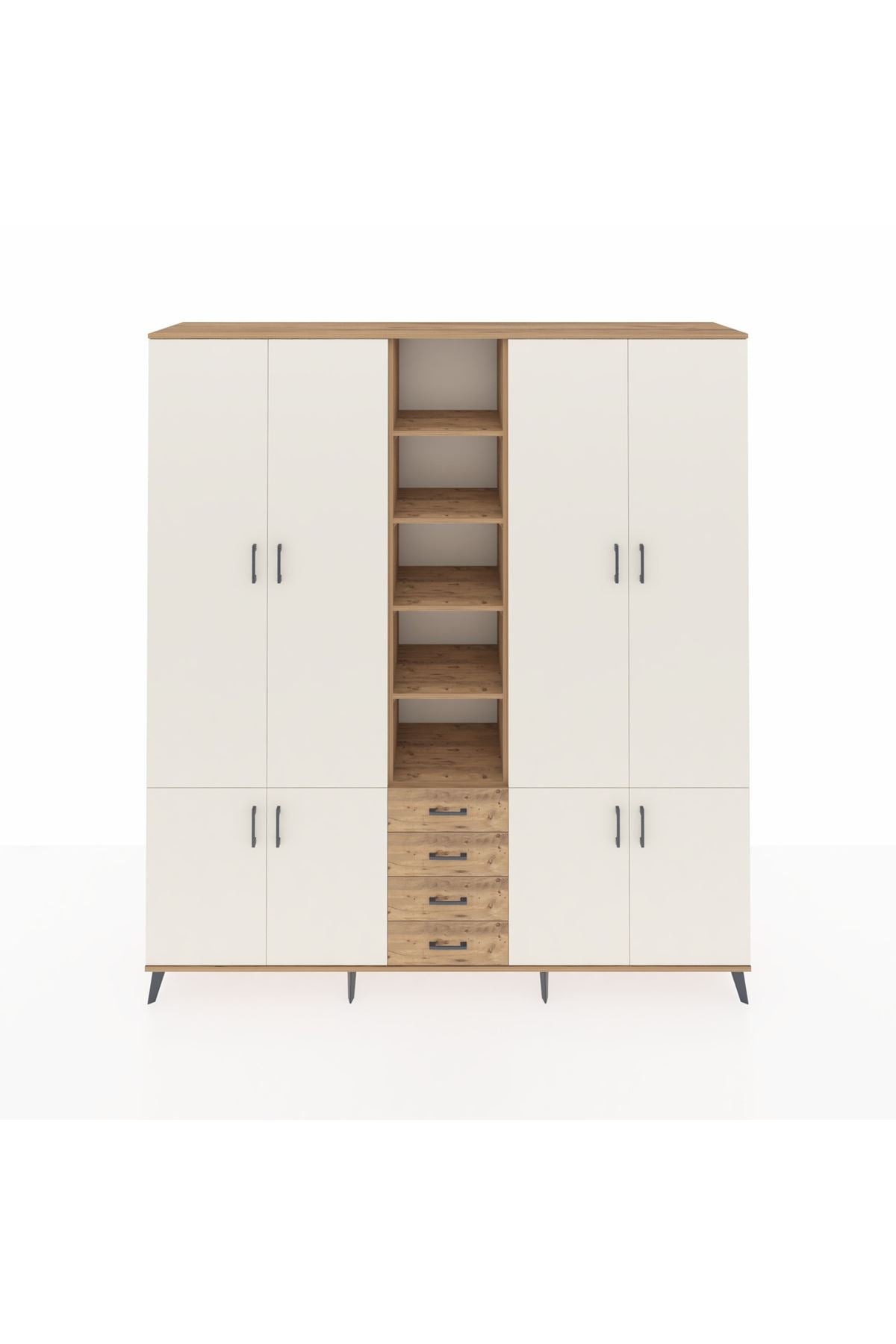 Hyperion Dolap 17 Raflı 4 Çekmeceli 8 Kapaklı 220x44x243 Çam-Aytaşı/Çam