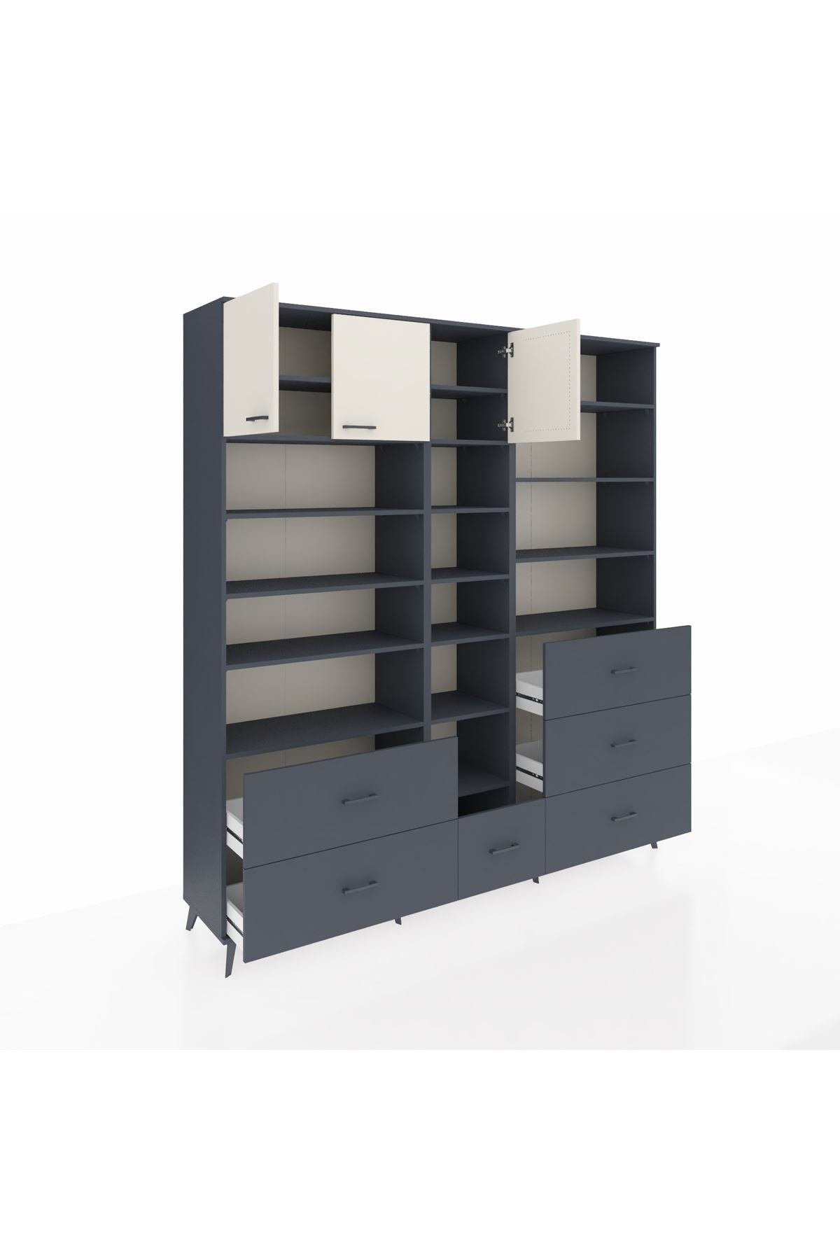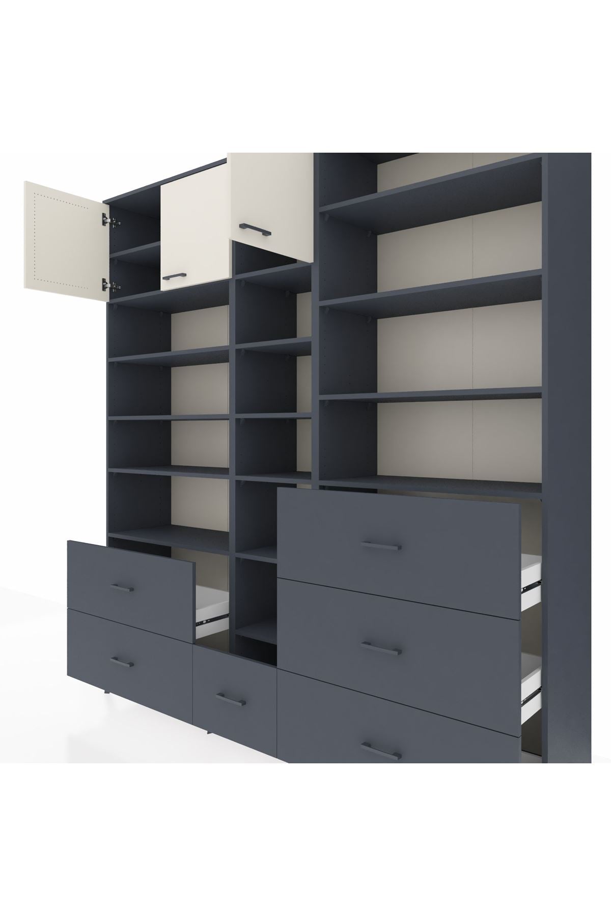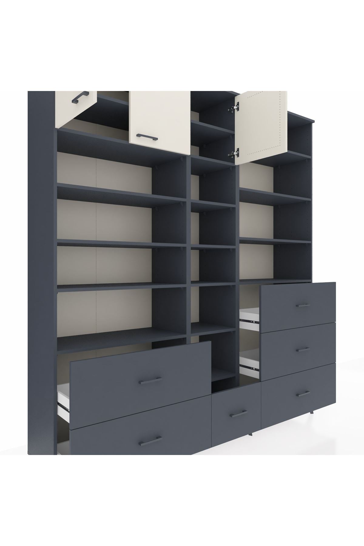Hyperion Dolap 17 Raflı 6 Çekmeceli 3 Kapaklı 220x44x243 Antrasit-Aytaşı/Antrasit