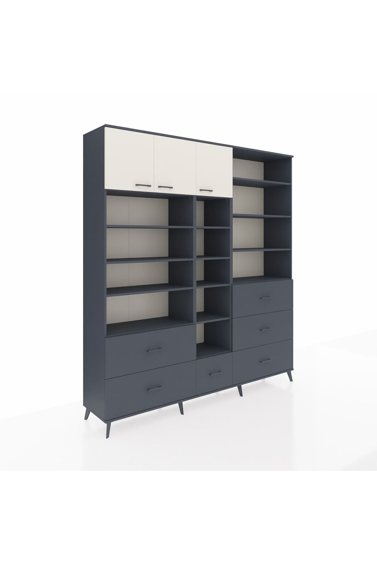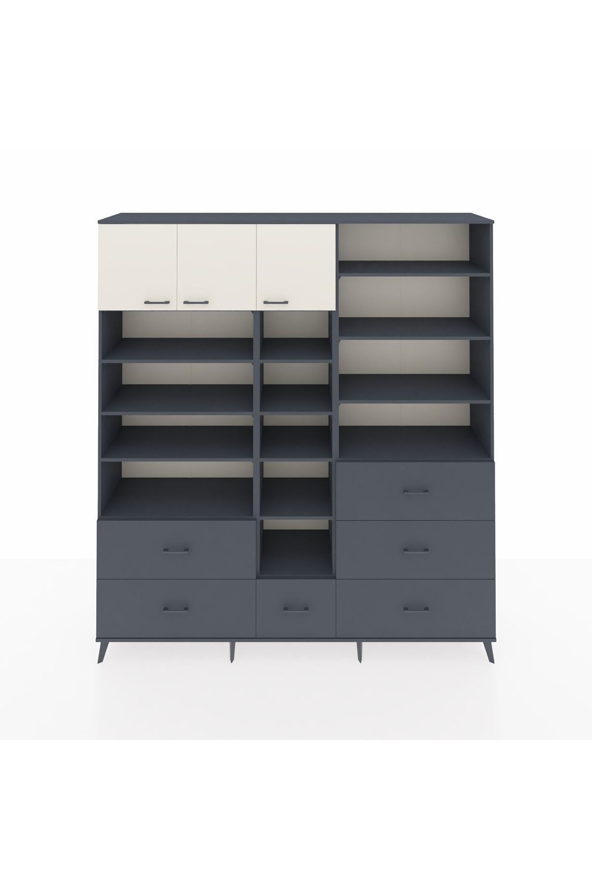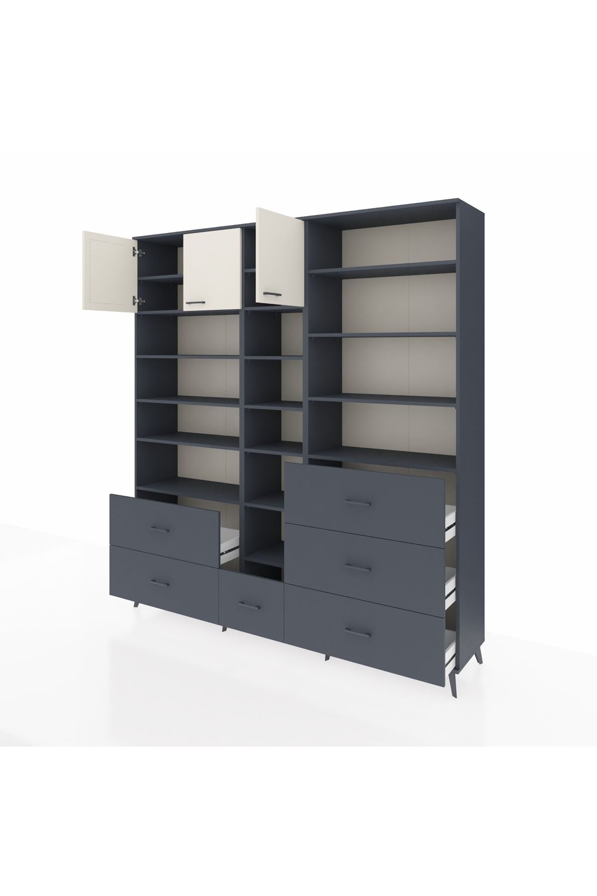 Hyperion Dolap 17 Raflı 6 Çekmeceli 3 Kapaklı 220x44x243 Antrasit-Aytaşı/Antrasit
