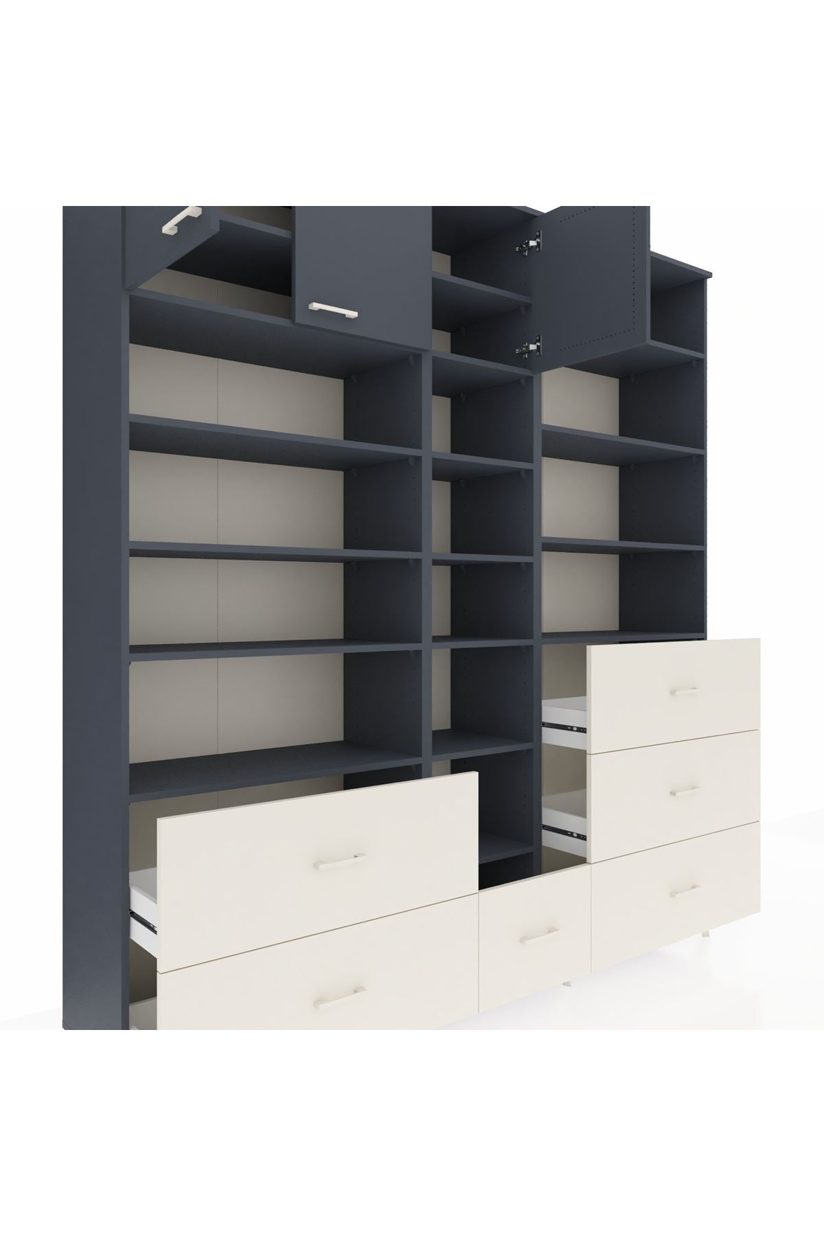 Hyperion Dolap 17 Raflı 6 Çekmeceli 3 Kapaklı 220x44x243 Antrasit-Antrasit/Aytaşı