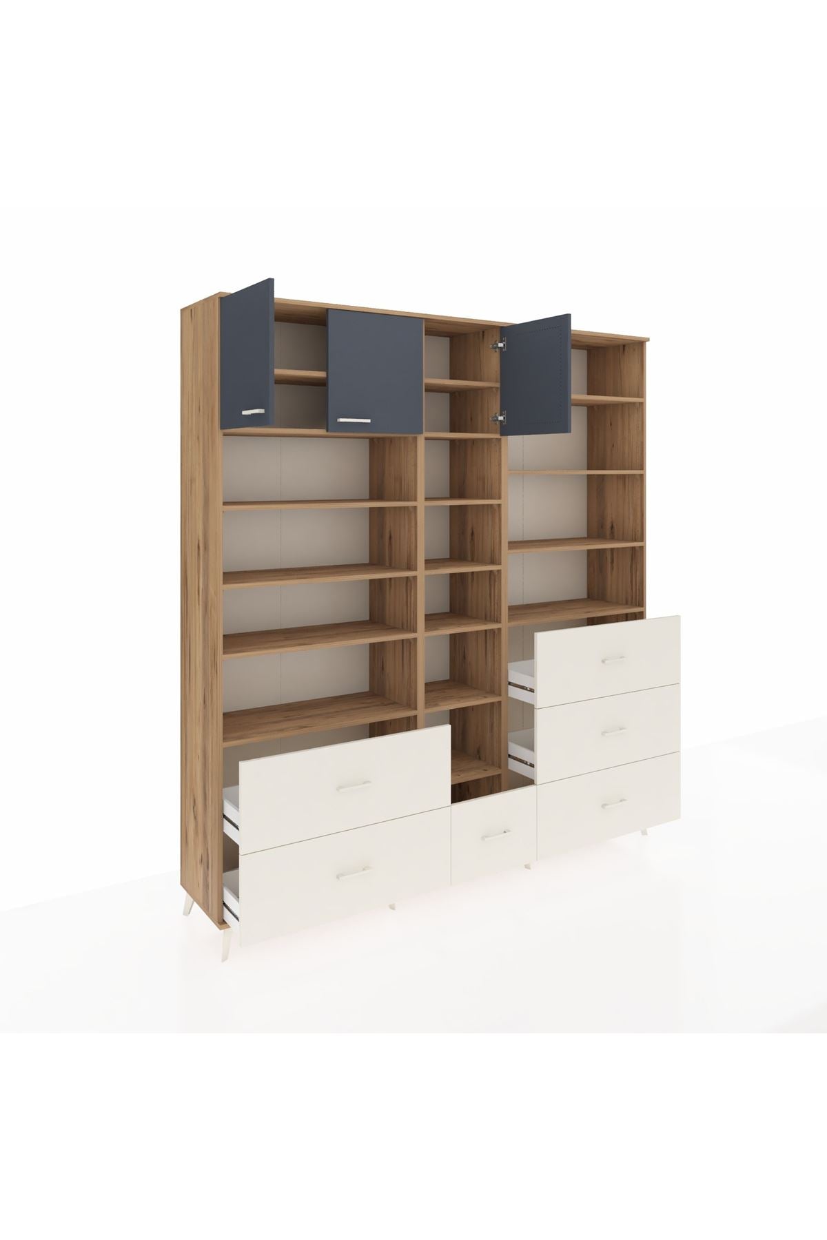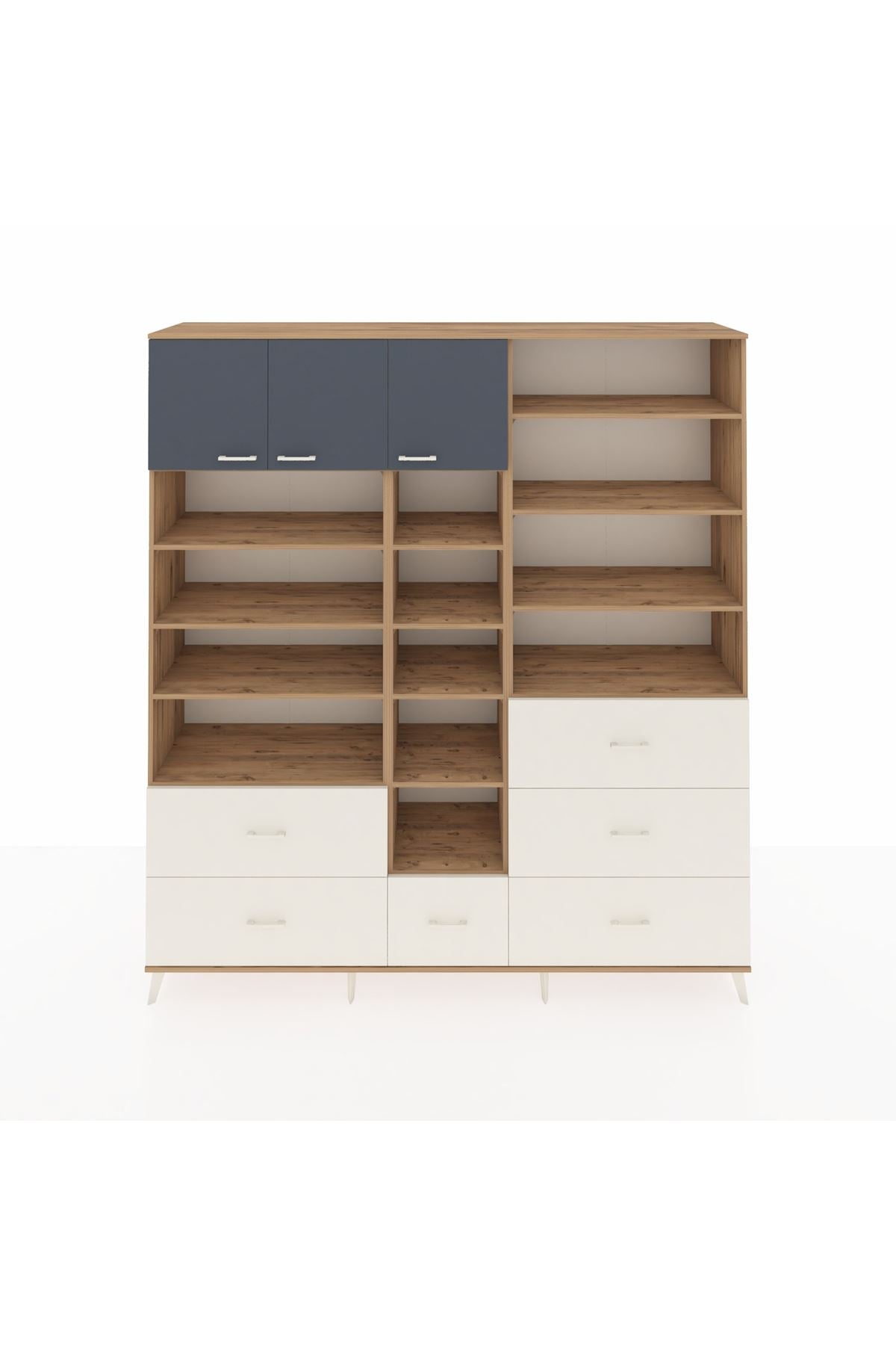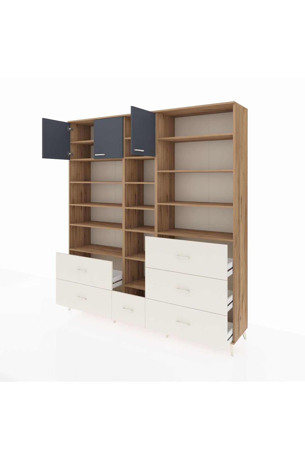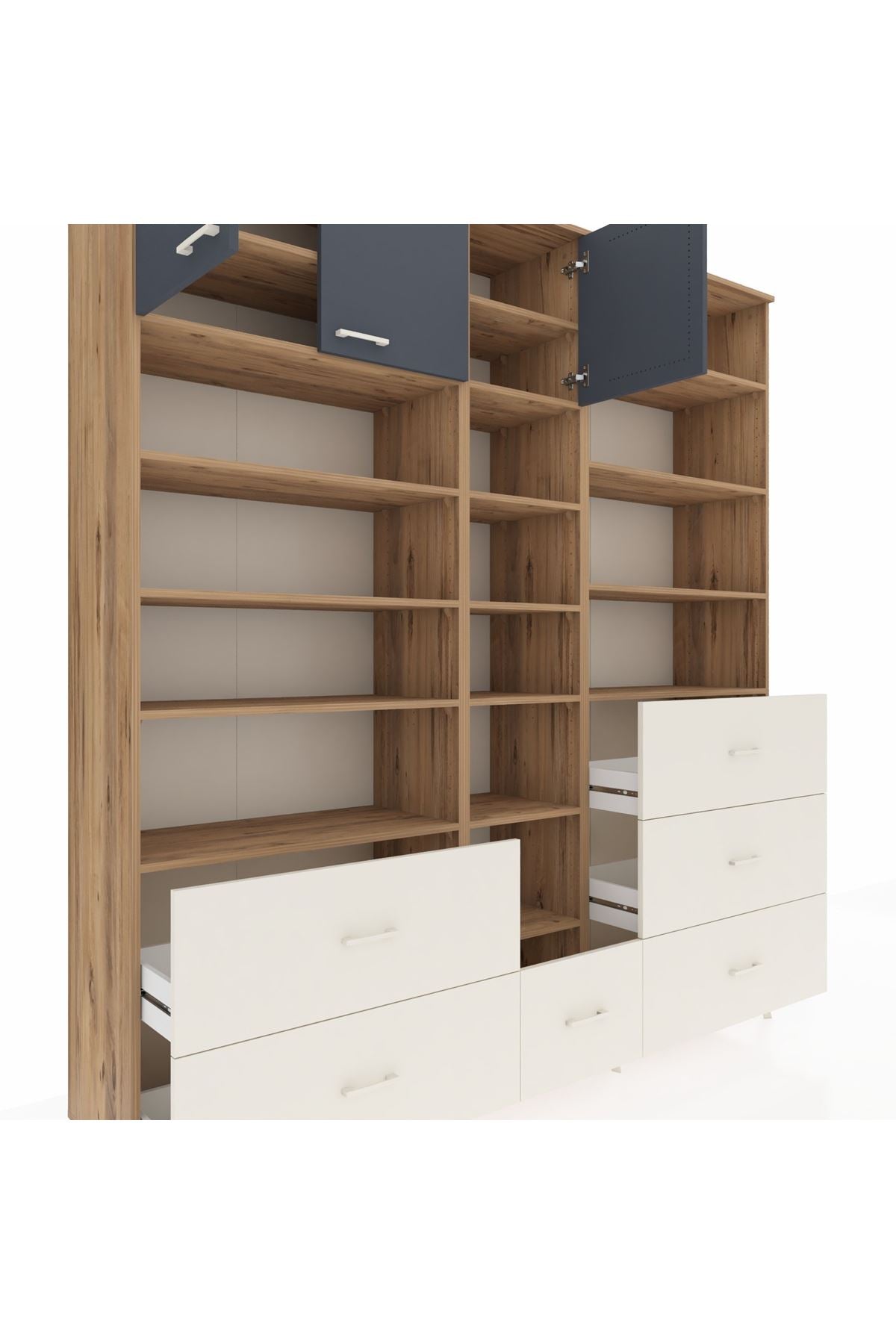 Hyperion Dolap 17 Raflı 6 Çekmeceli 3 Kapaklı 220x44x243 Çam-Antrasit/Aytaşı