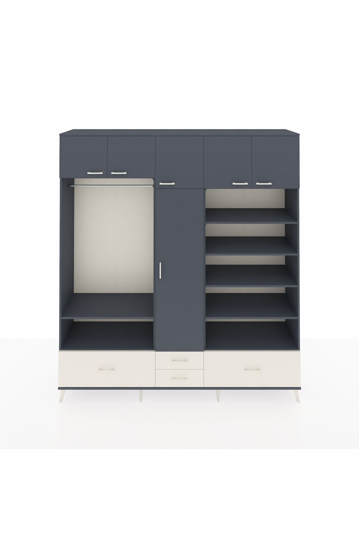 Hyperion Dolap 18 Raflı 4 Çekmeceli Tek Askılı 220x44x243 Antrasit-Antrasit/Aytaşı