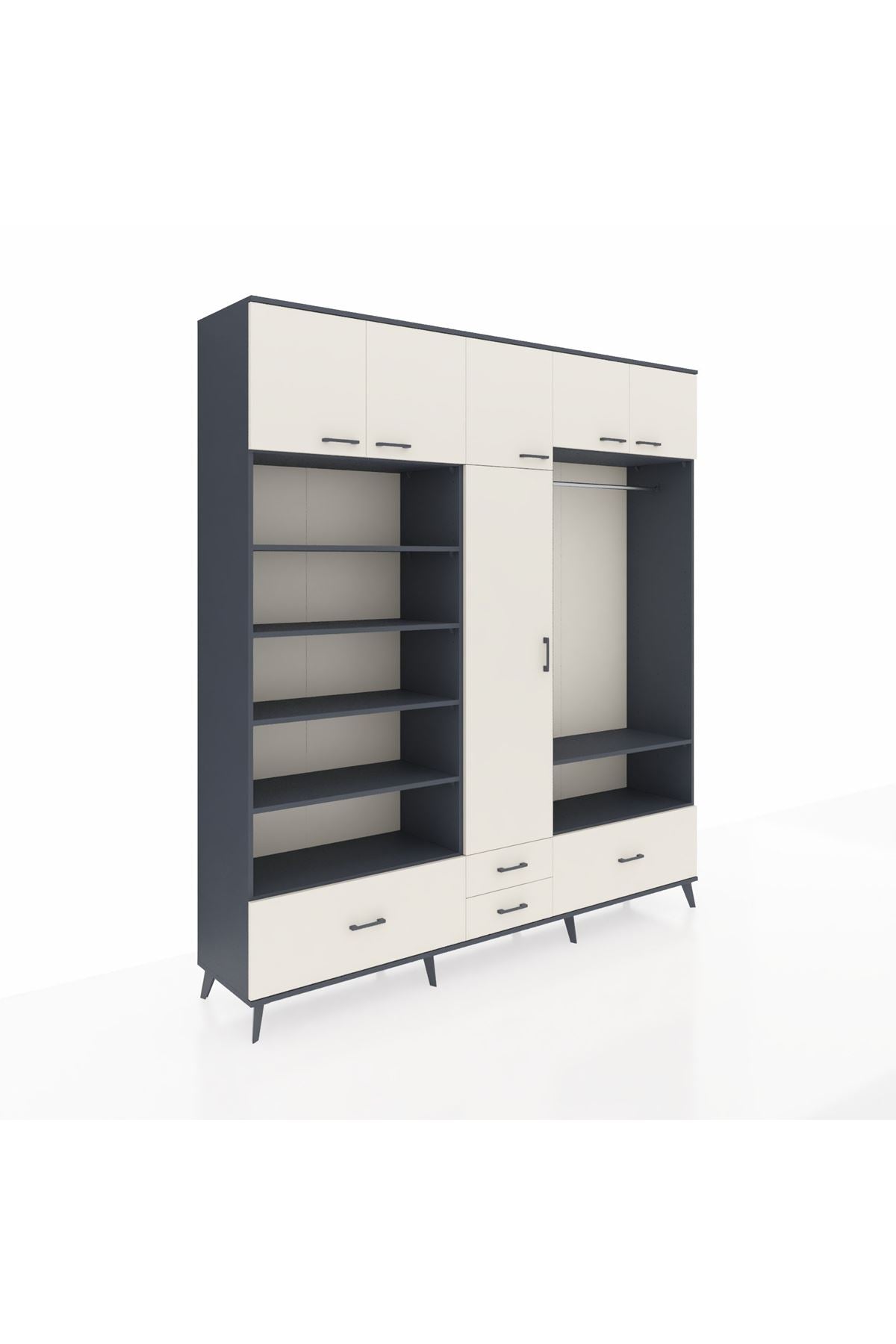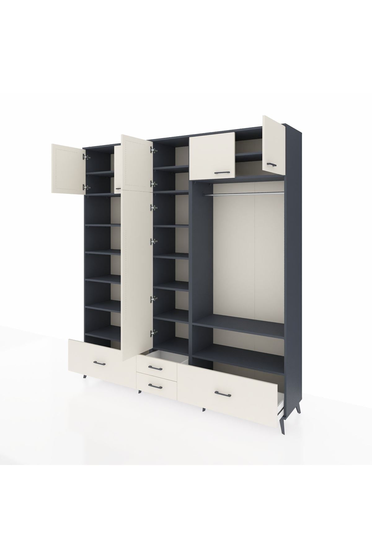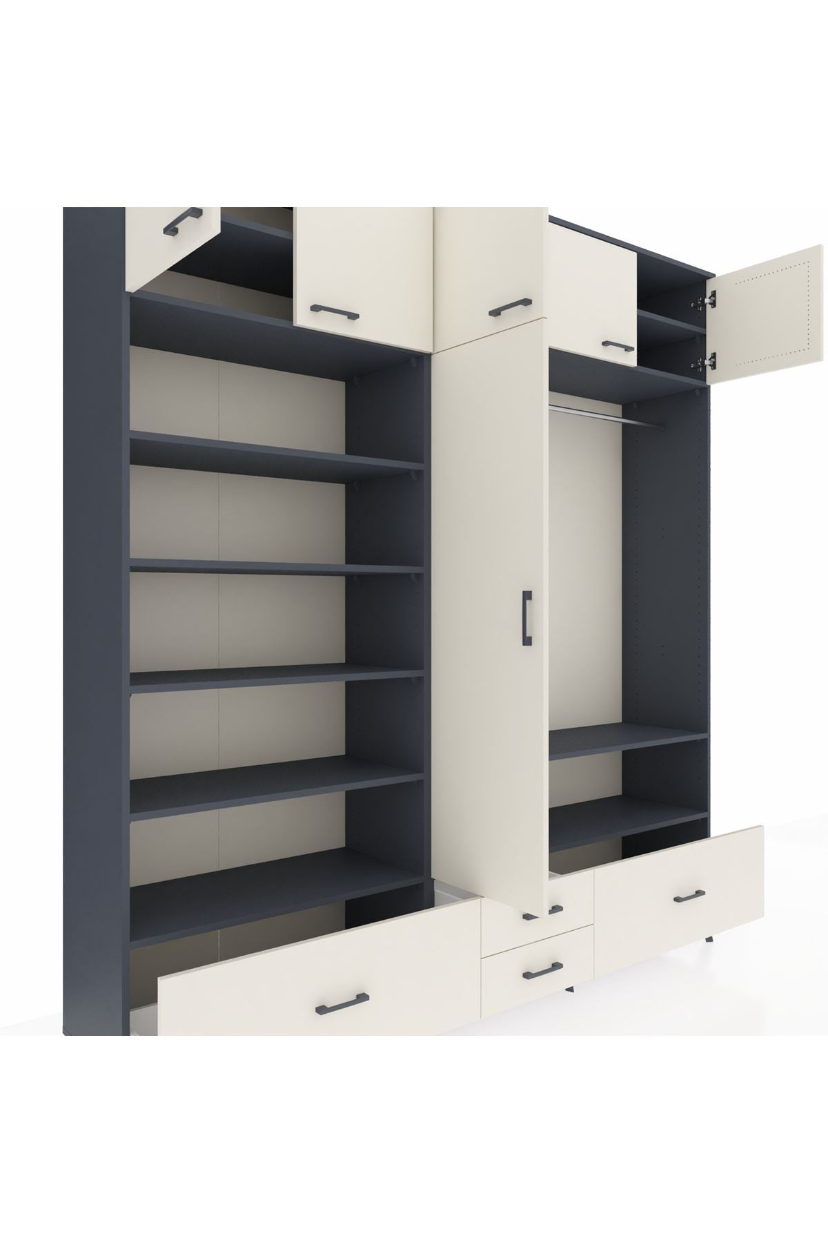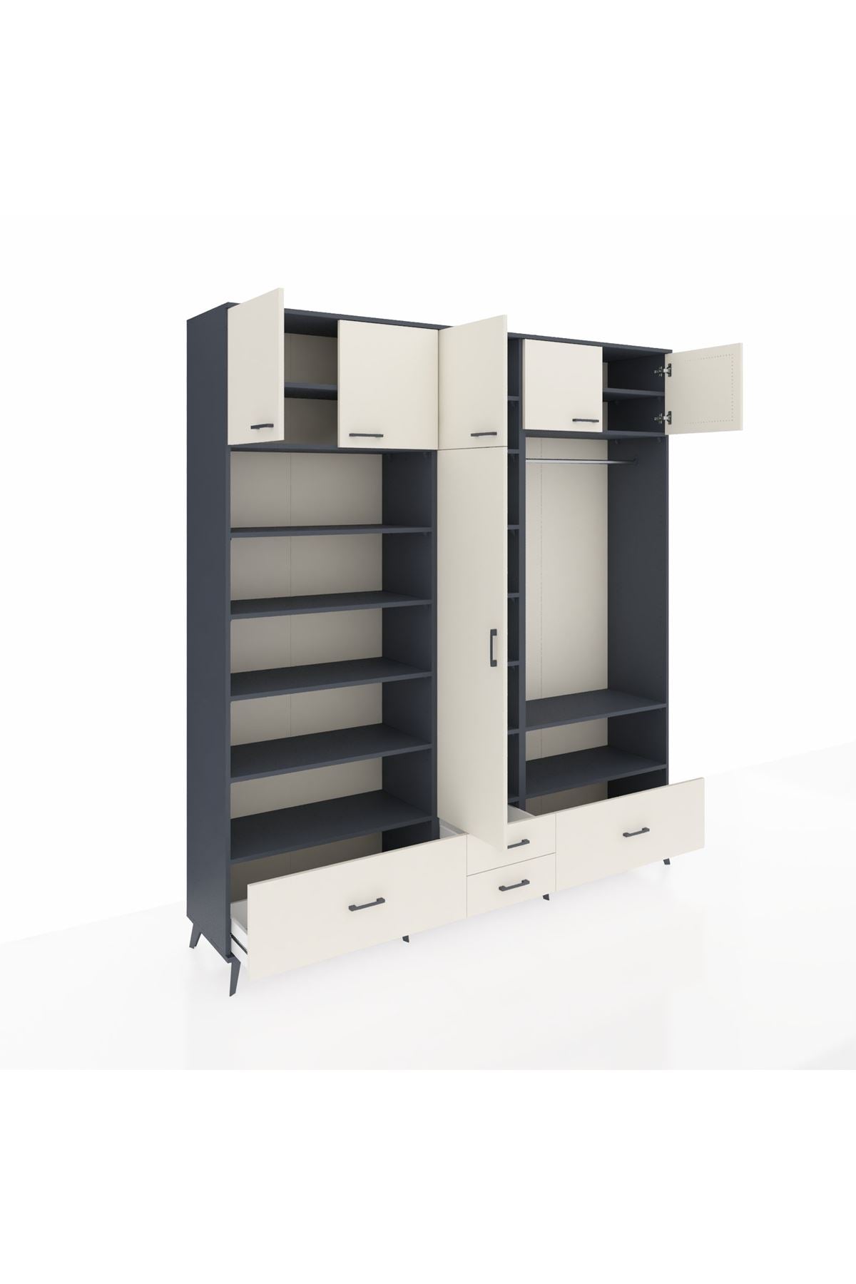Hyperion Dolap 18 Raflı 4 Çekmeceli Tek Askılı 220x44x243 Antrasit-Aytaşı/Aytaşı