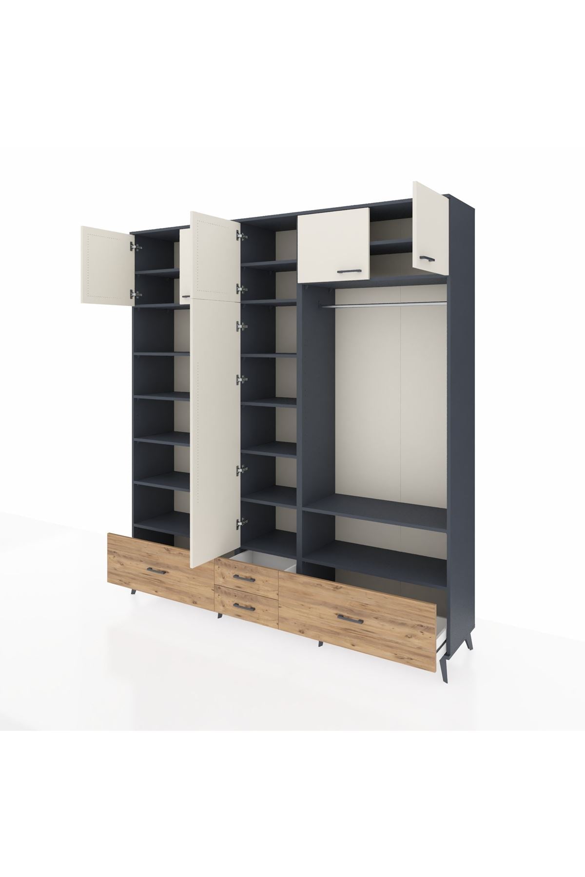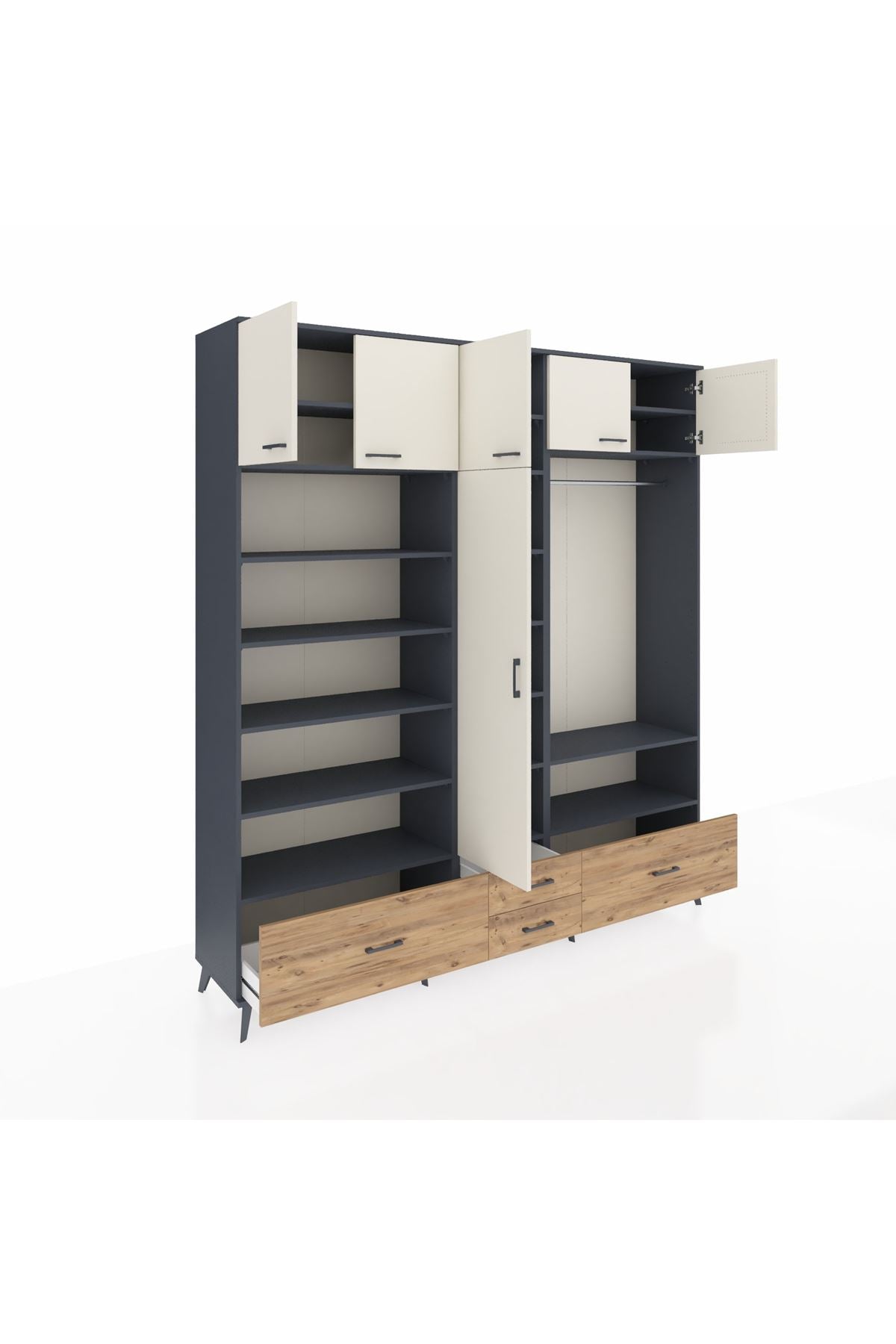Hyperion Dolap 18 Raflı 4 Çekmeceli Tek Askılı 220x44x243 Antrasit-Aytaşı/Çam