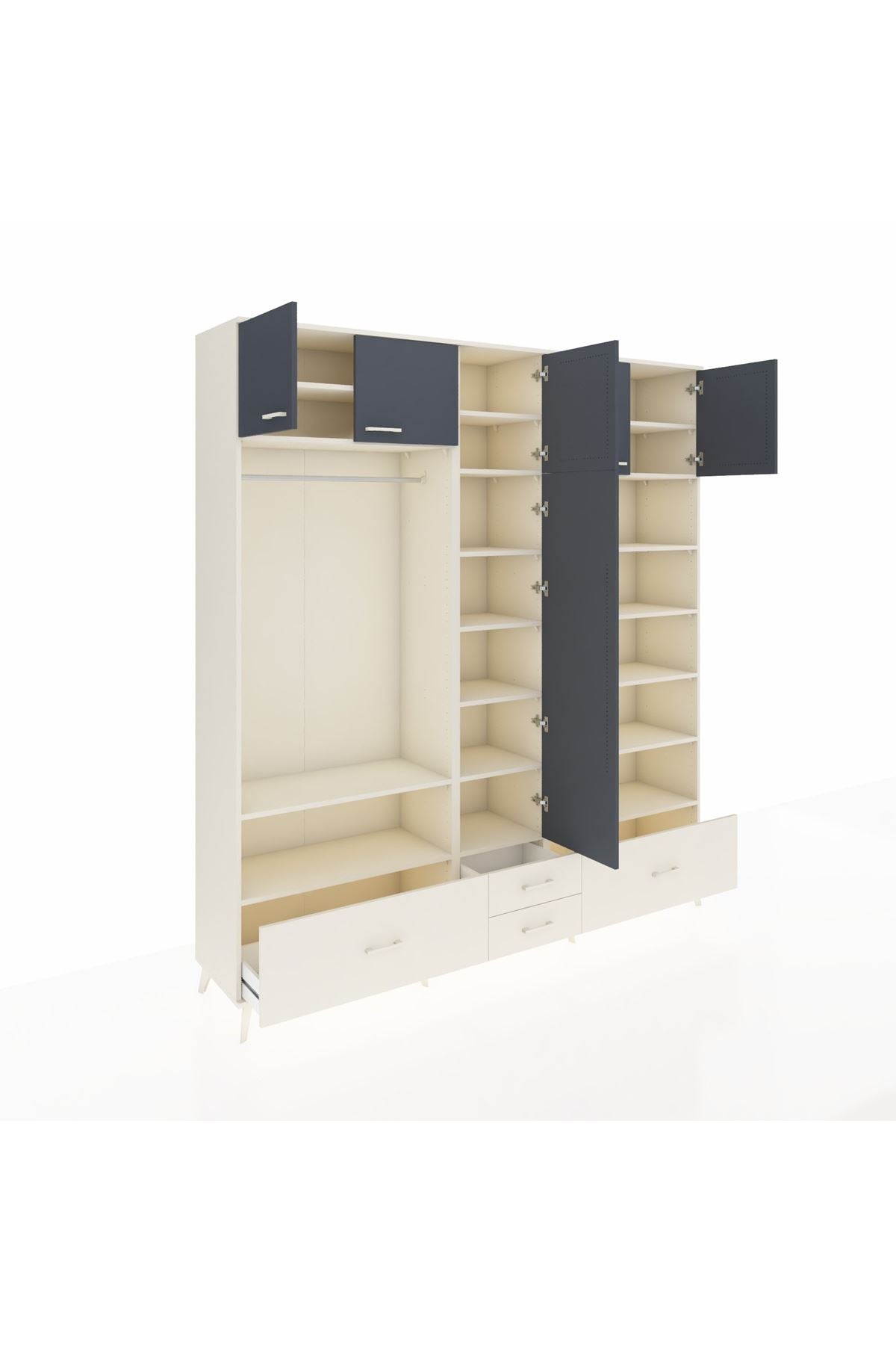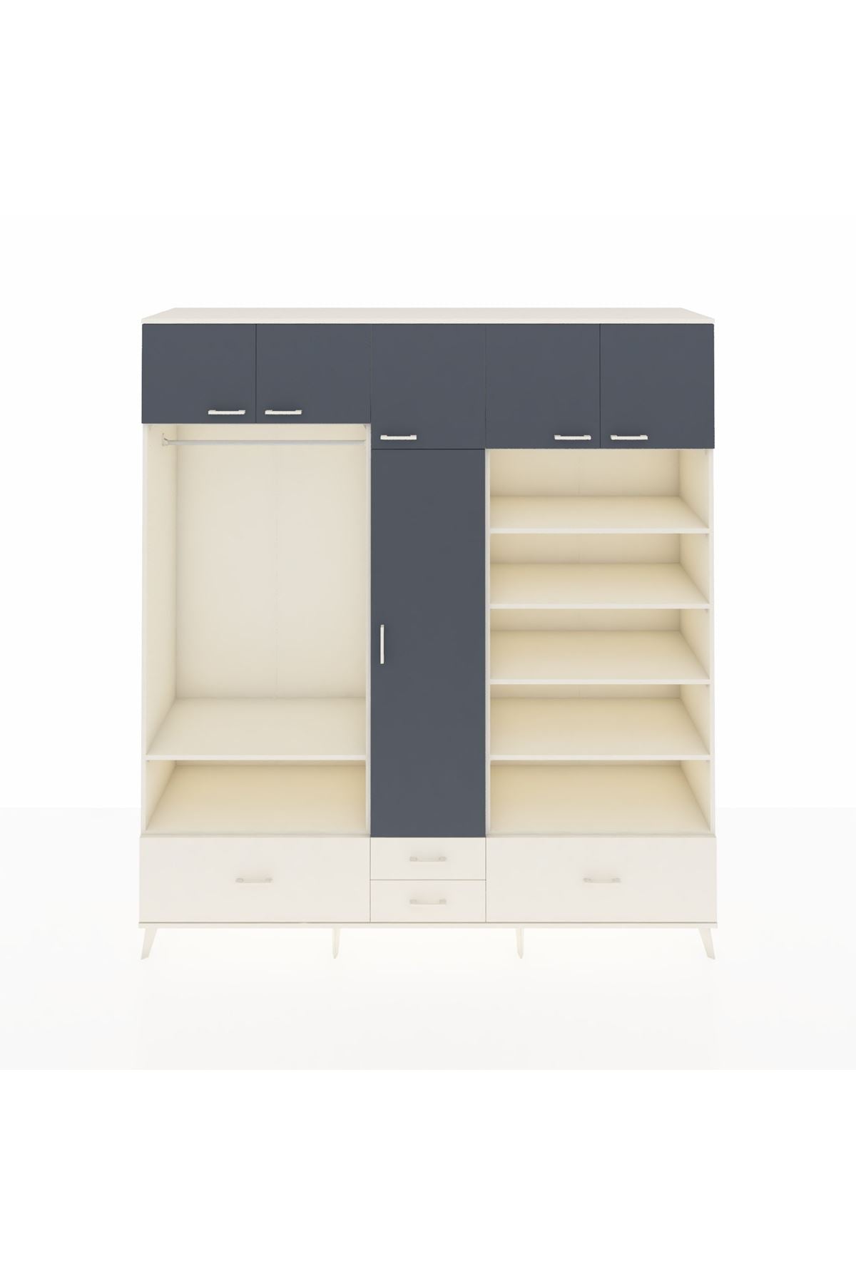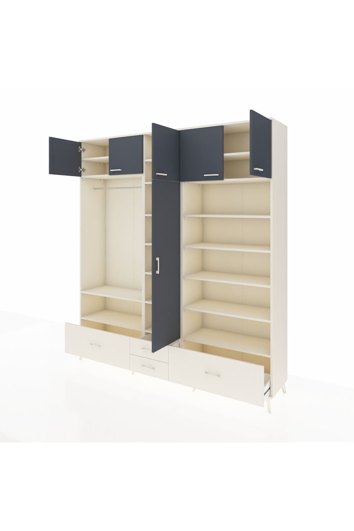 Hyperion Dolap 18 Raflı 4 Çekmeceli Tek Askılı 220x44x243 Aytaşı-Antrasit/Aytaşı