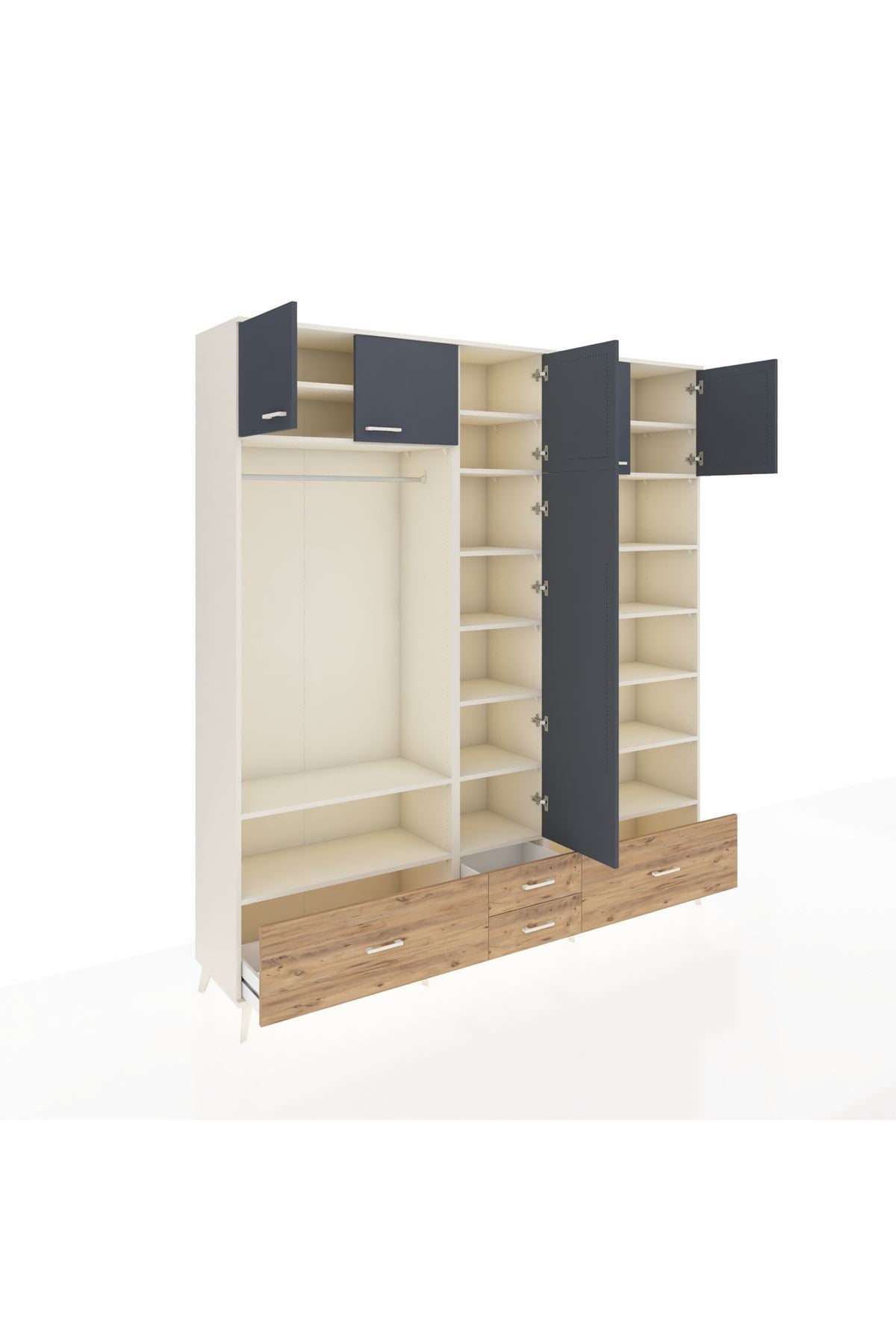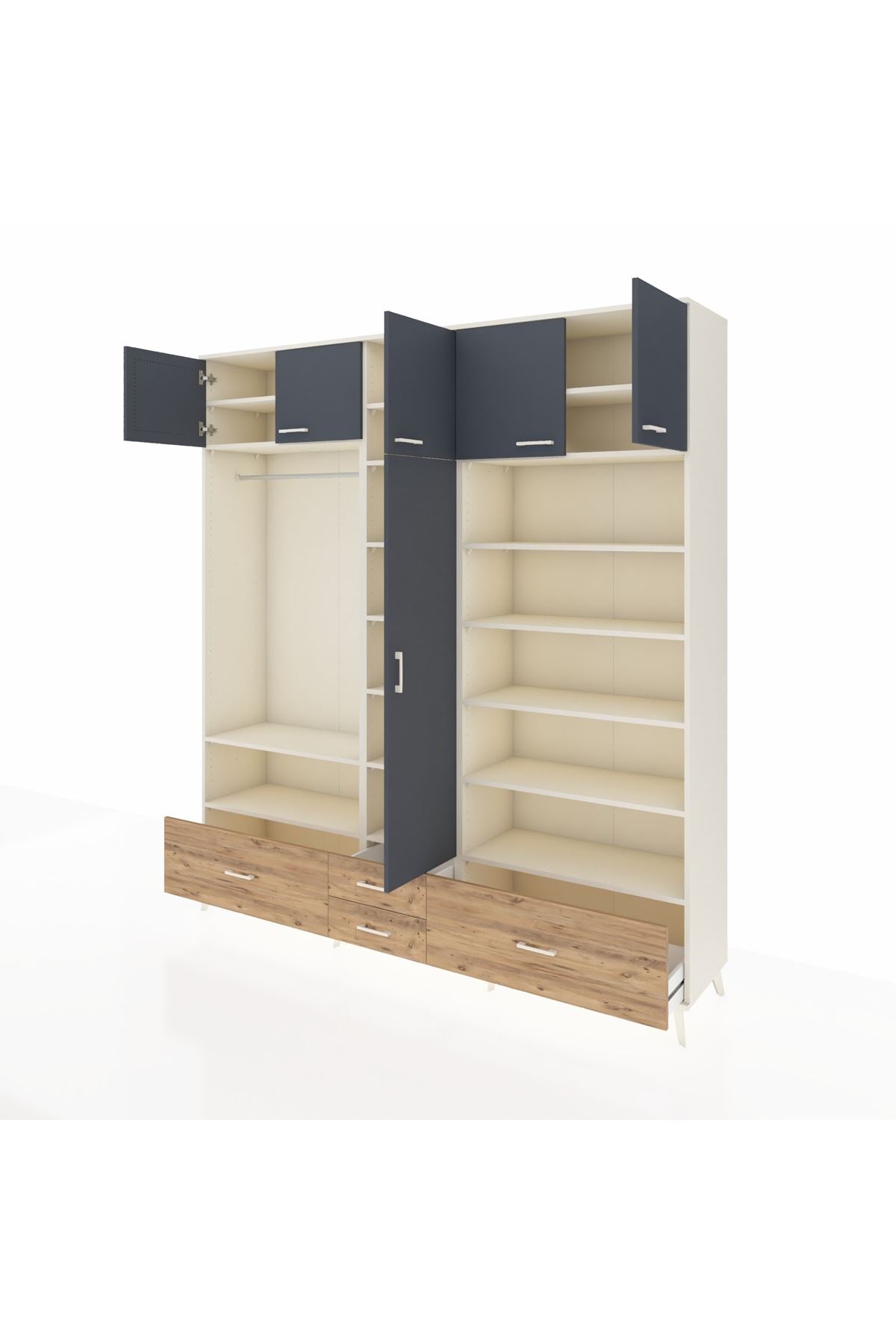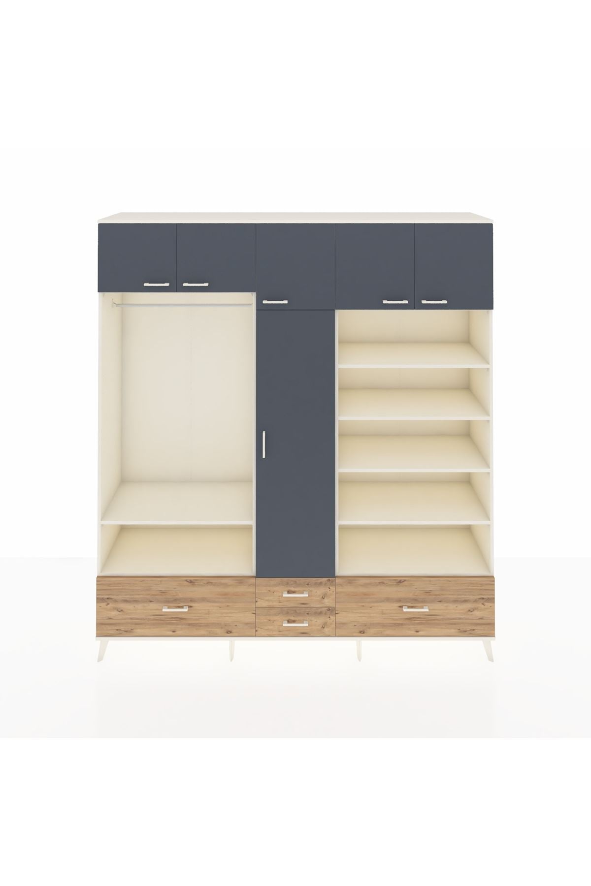 Hyperion Dolap 18 Raflı 4 Çekmeceli Tek Askılı 220x44x243 Aytaşı-Antrasit/Çam