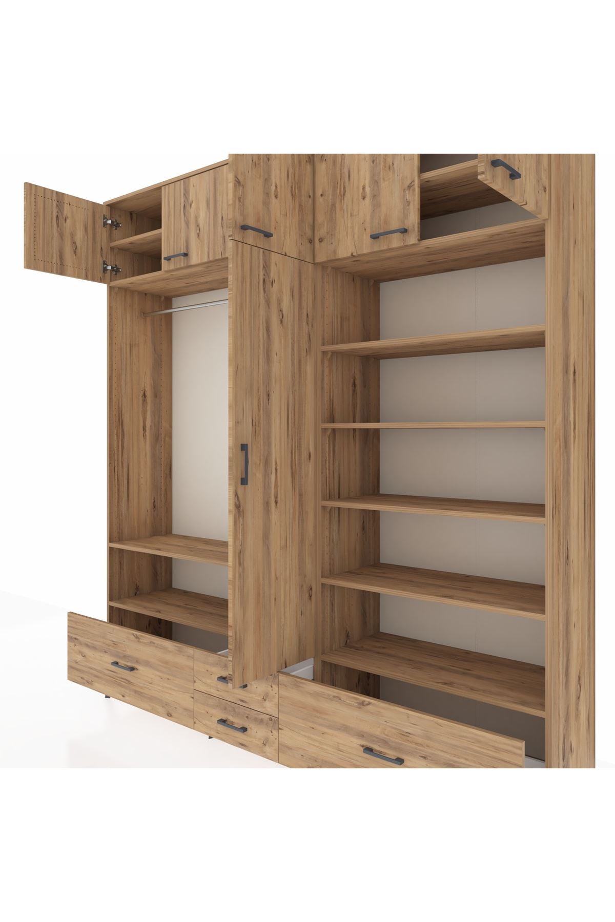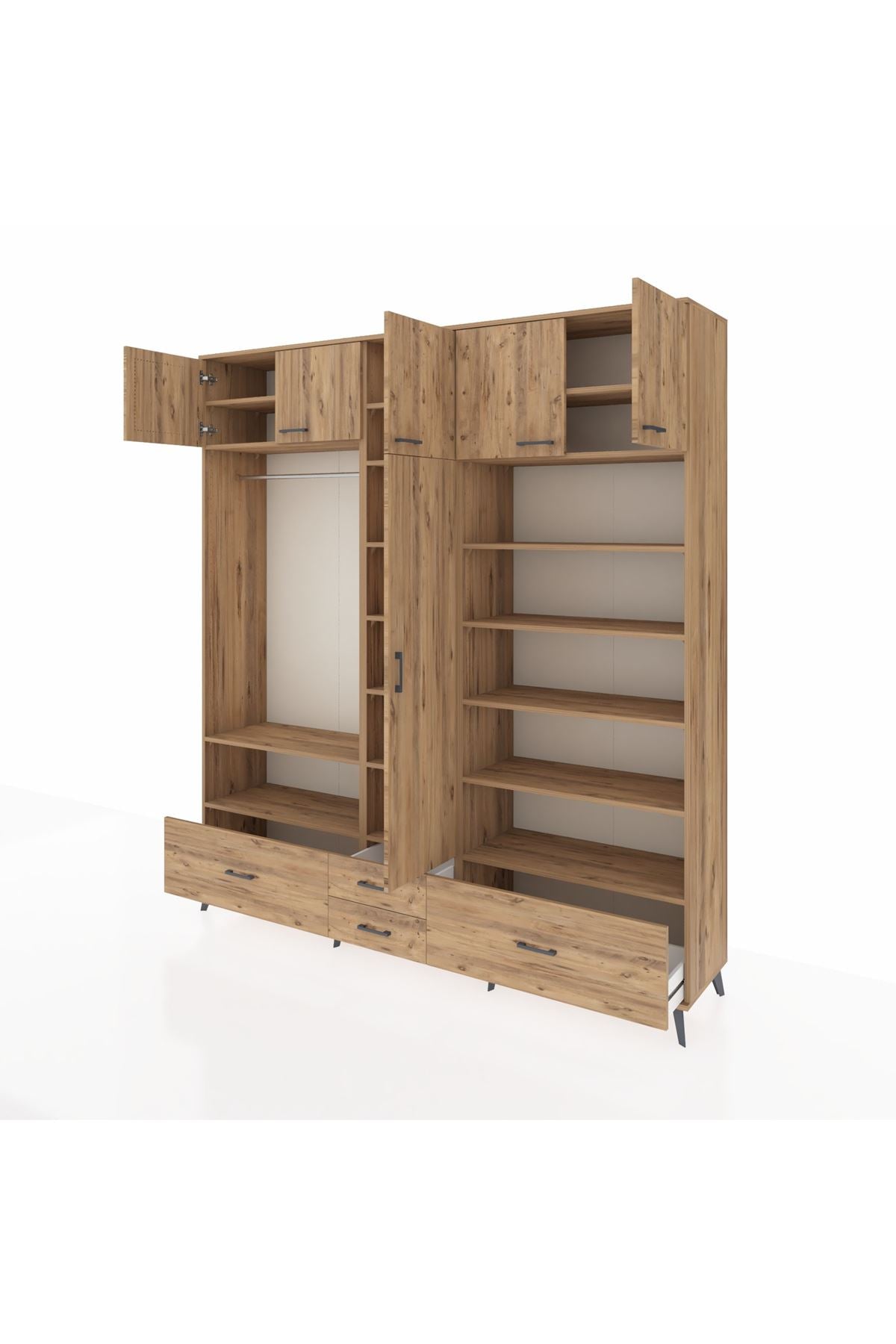 Hyperion Dolap 18 Raflı 4 Çekmeceli Tek Askılı 220x44x243 Çam-Çam/Çam