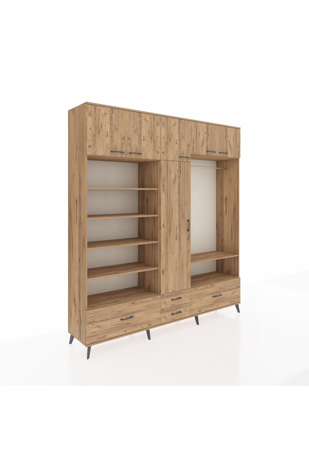 Hyperion Dolap 18 Raflı 4 Çekmeceli Tek Askılı 220x44x243 Çam-Çam/Çam