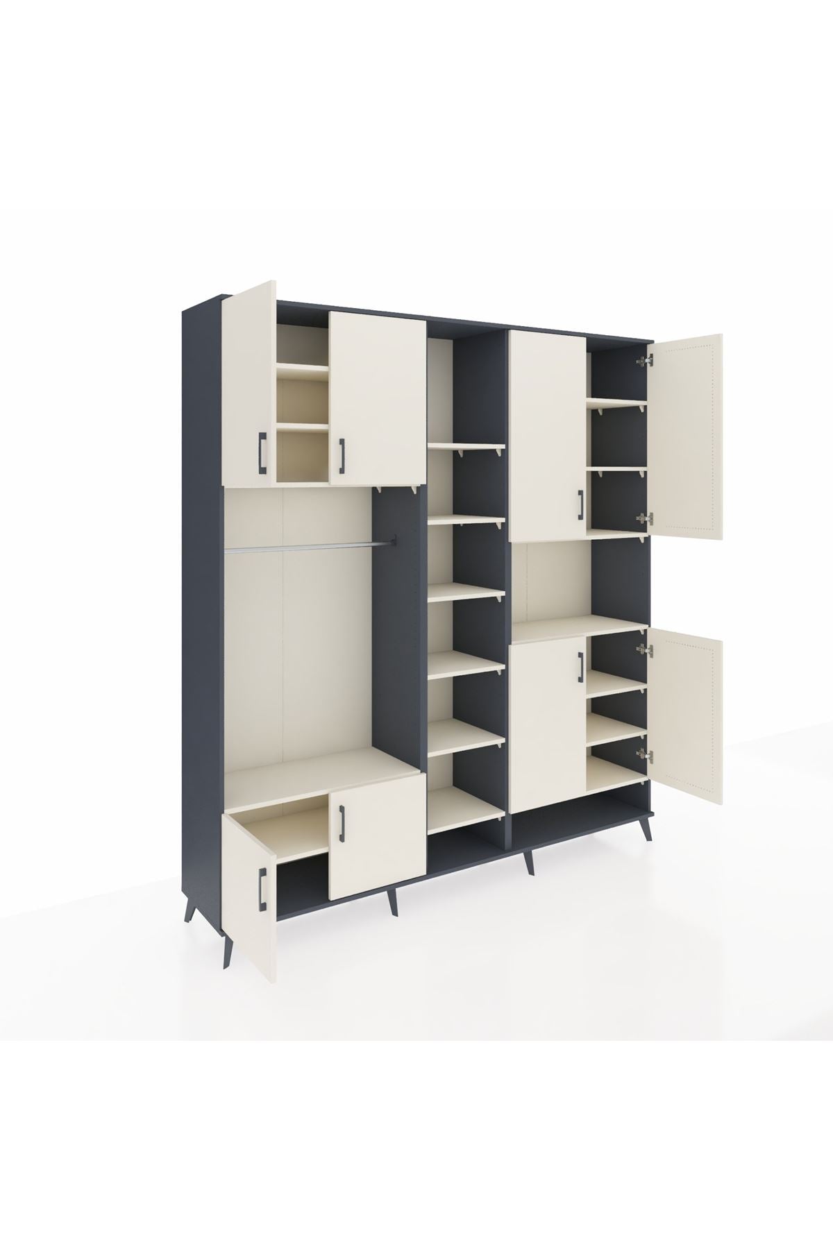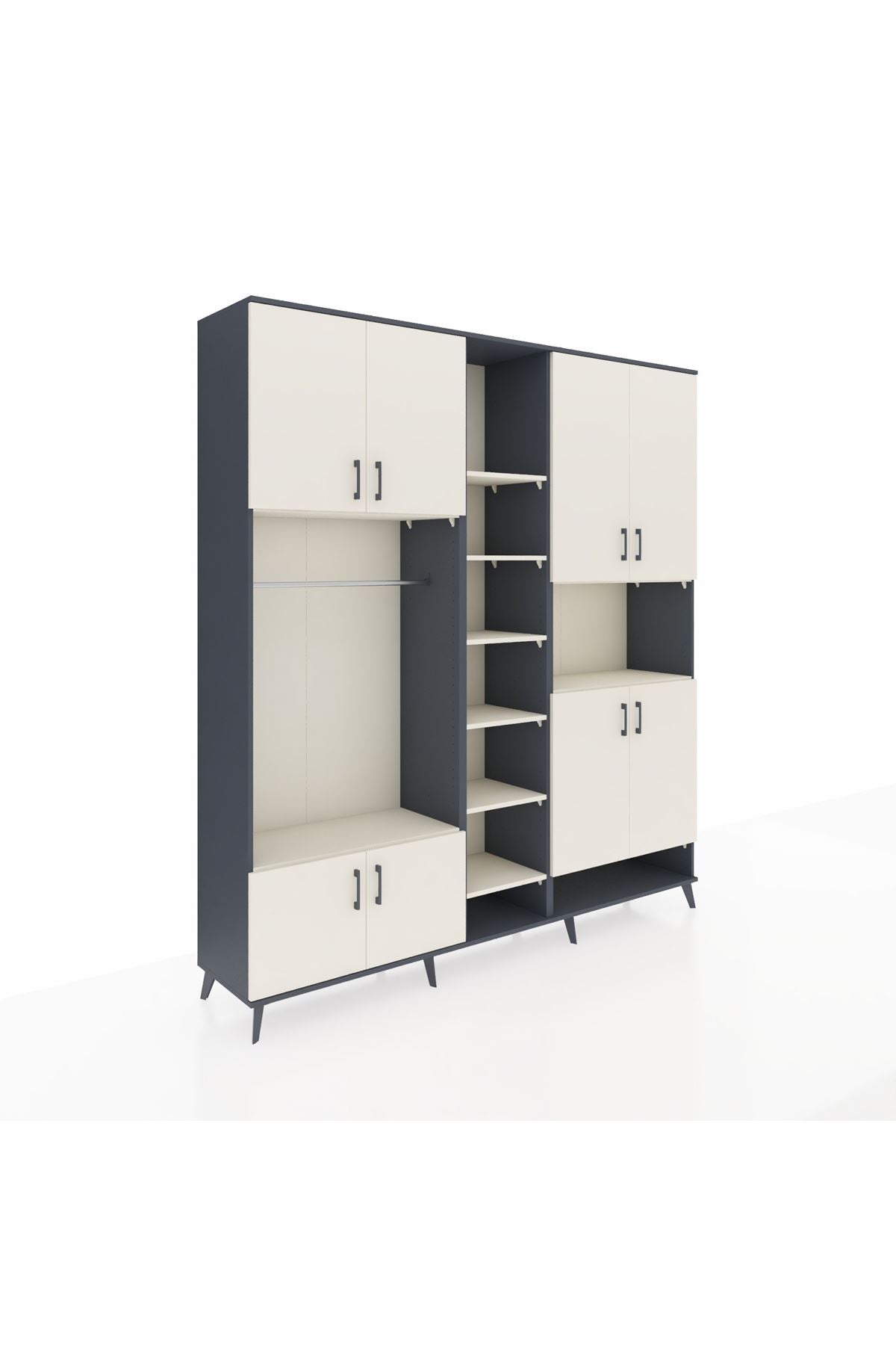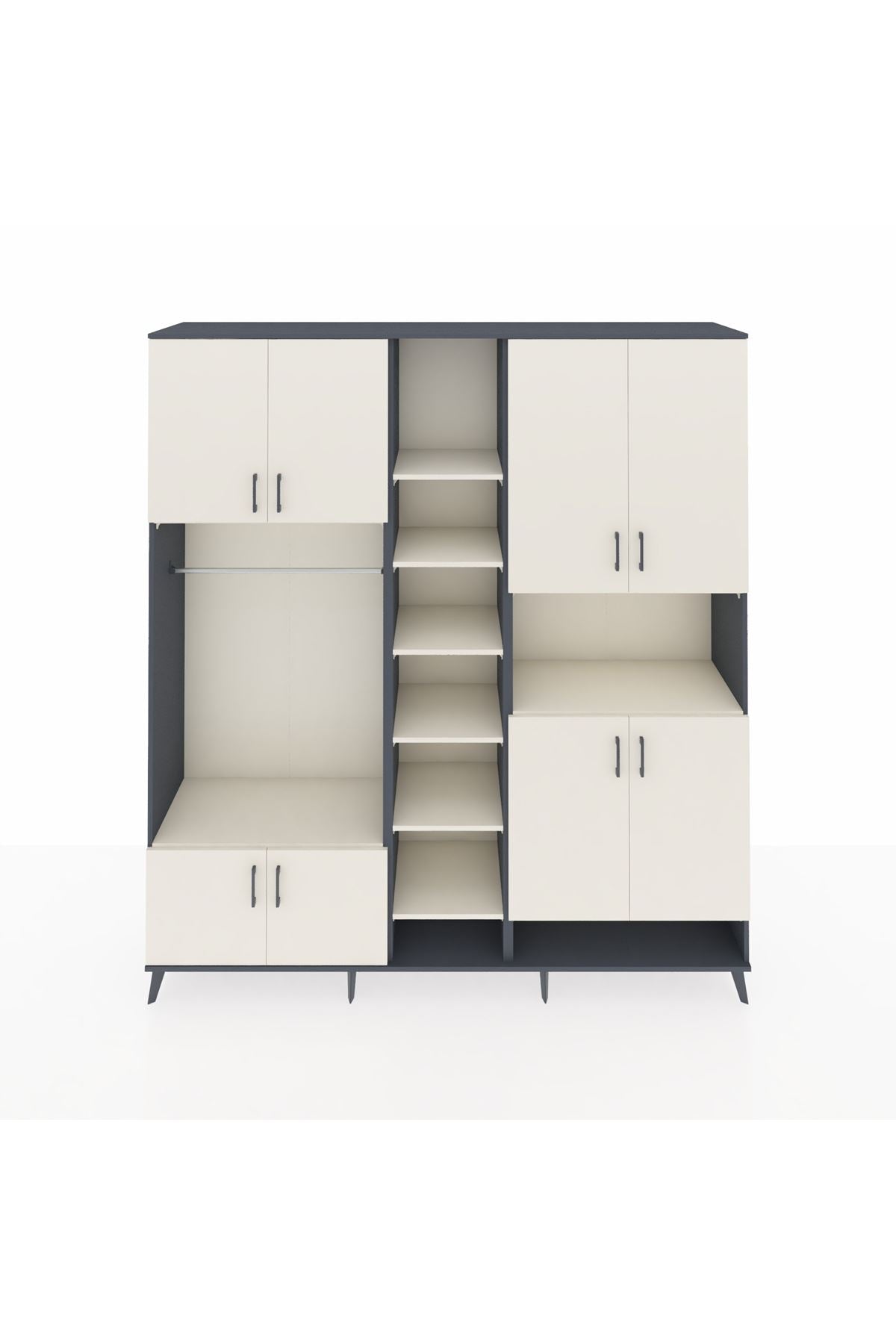 Hyperion Dolap 18 Raflı 8 Kapaklı Tek Askılı 220x44x243 Antrasit-Aytaşı/Aytaşı