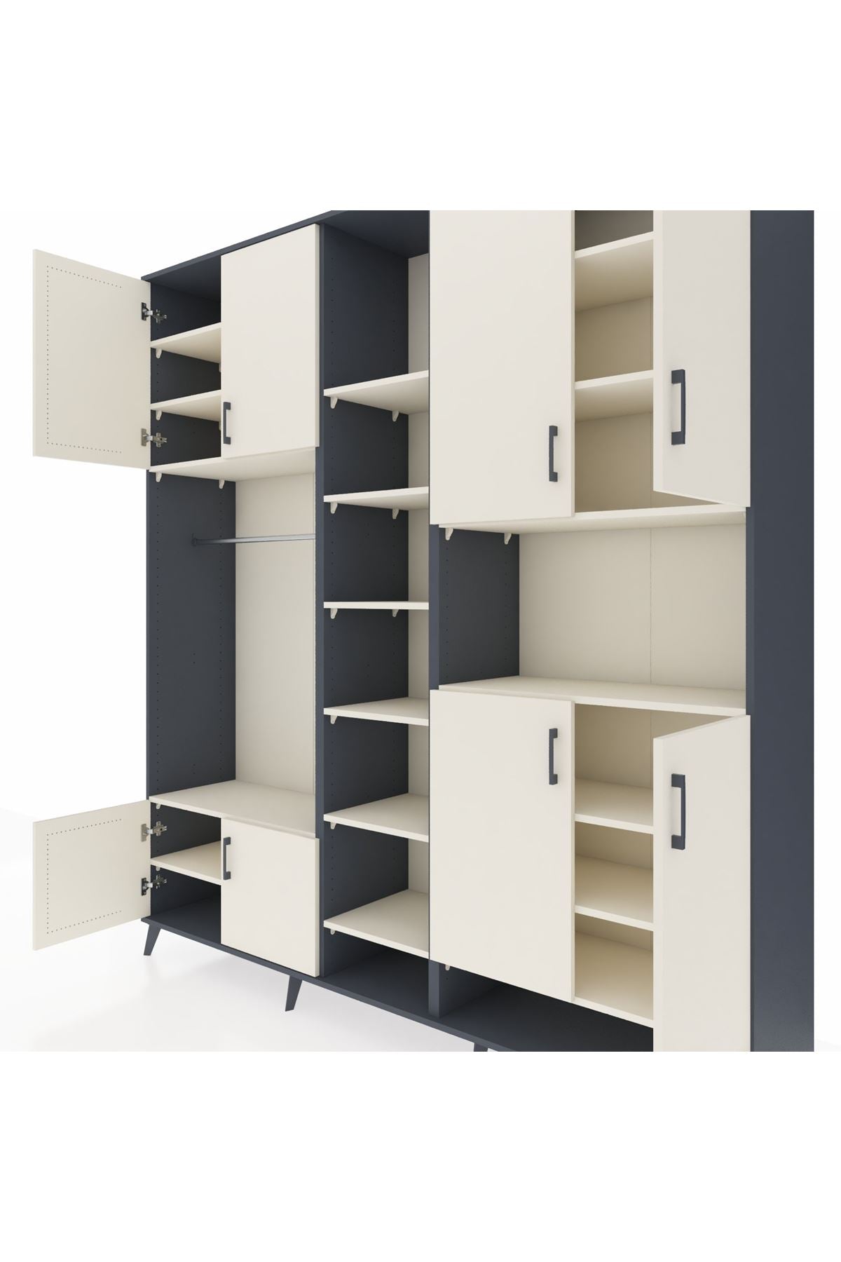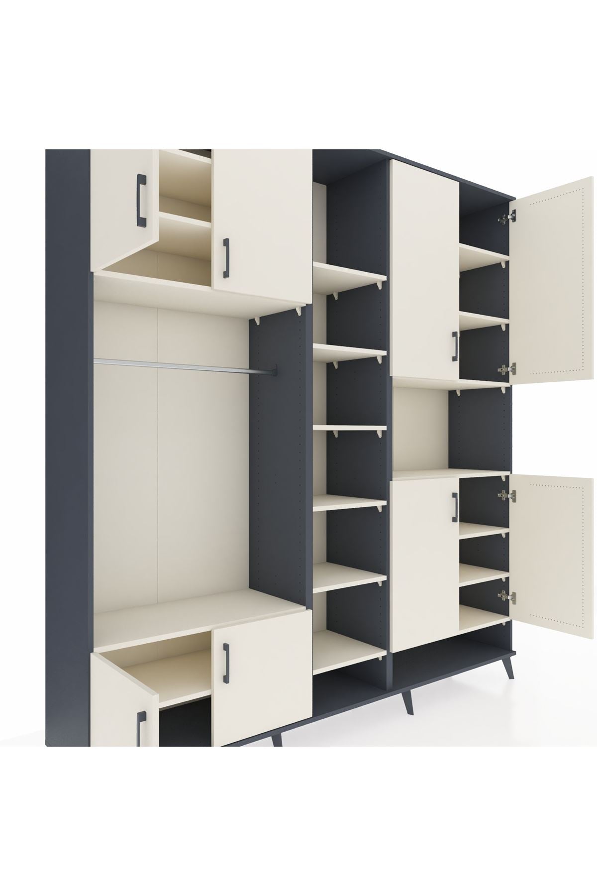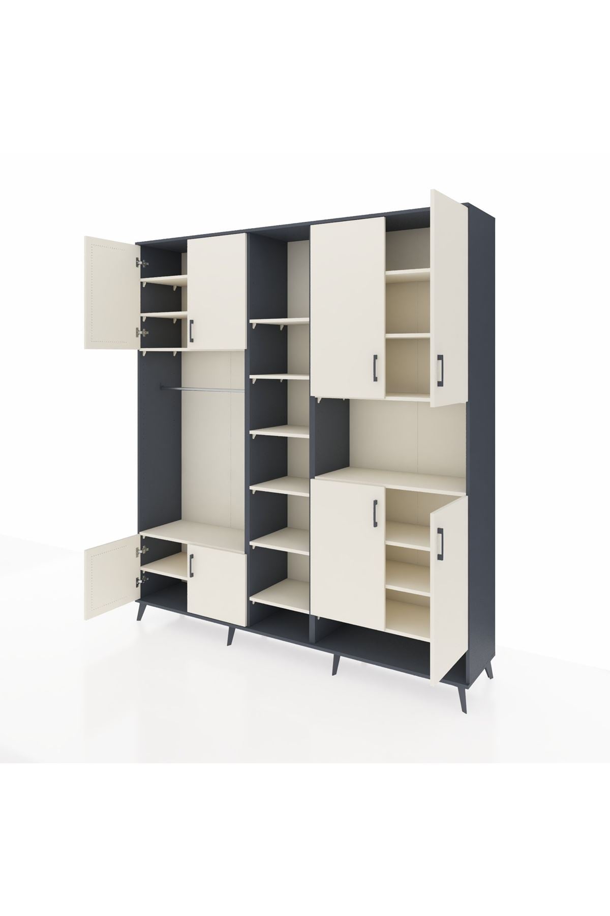 Hyperion Dolap 18 Raflı 8 Kapaklı Tek Askılı 220x44x243 Antrasit-Aytaşı/Aytaşı