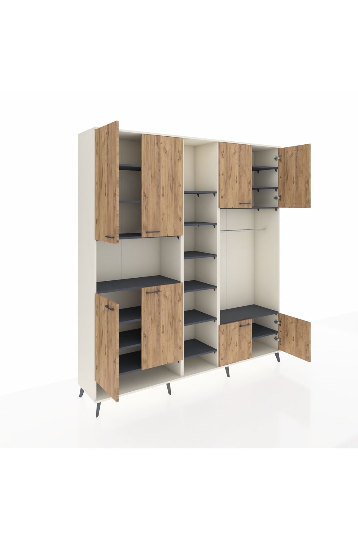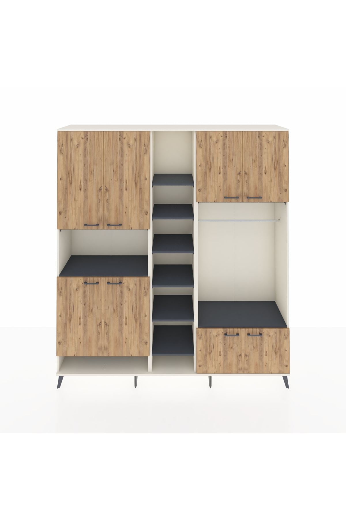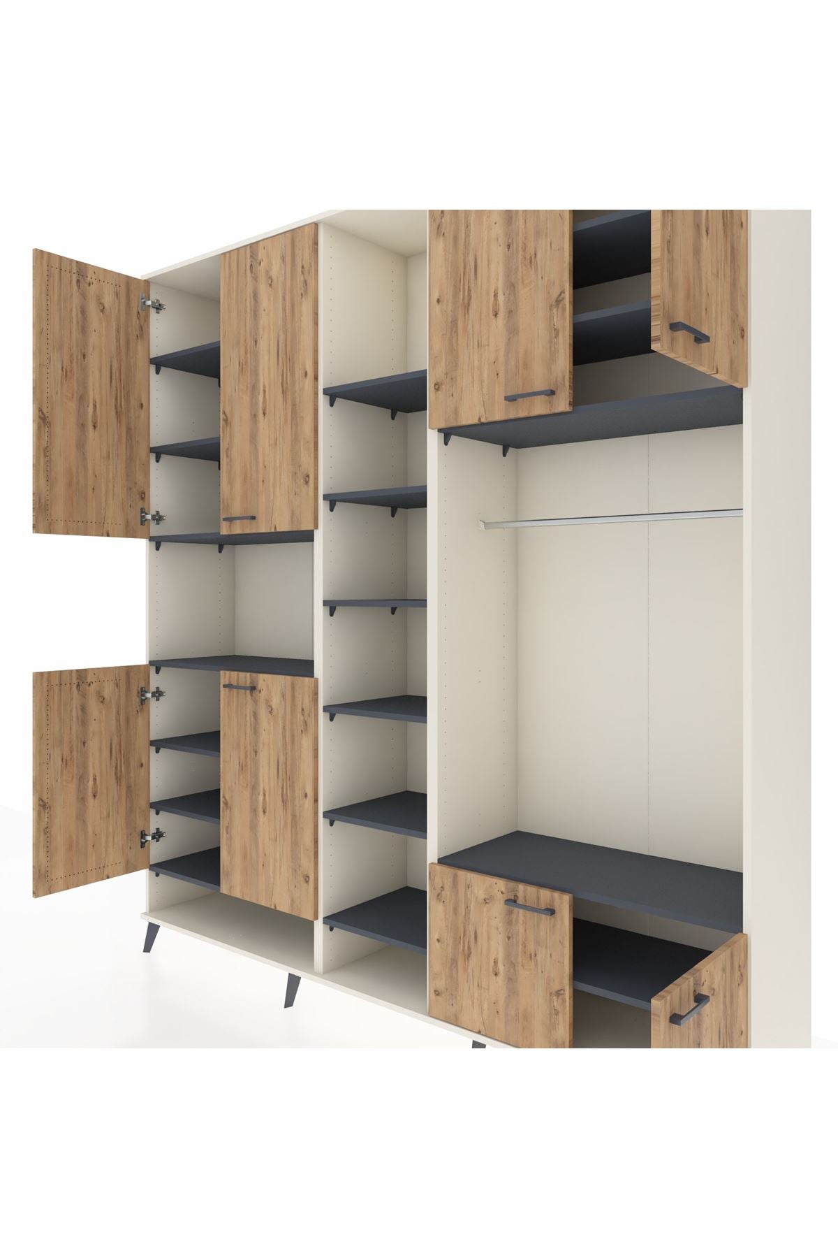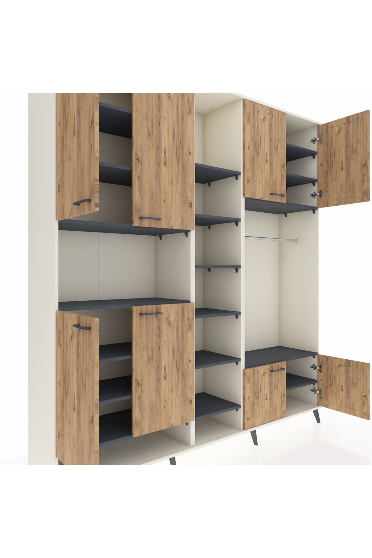 Hyperion Dolap 18 Raflı 8 Kapaklı Tek Askılı 220x44x243 Aytaşı-Çam/Antrasit