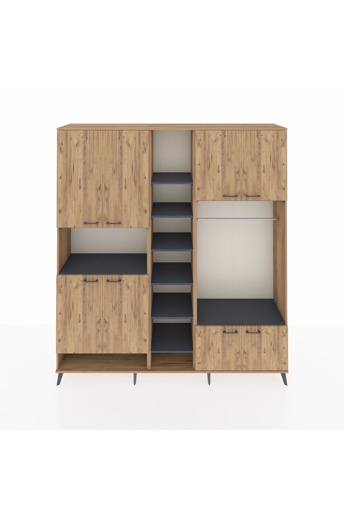 Hyperion Dolap 18 Raflı 8 Kapaklı Tek Askılı 220x44x243 Çam-Çam/Antrasit