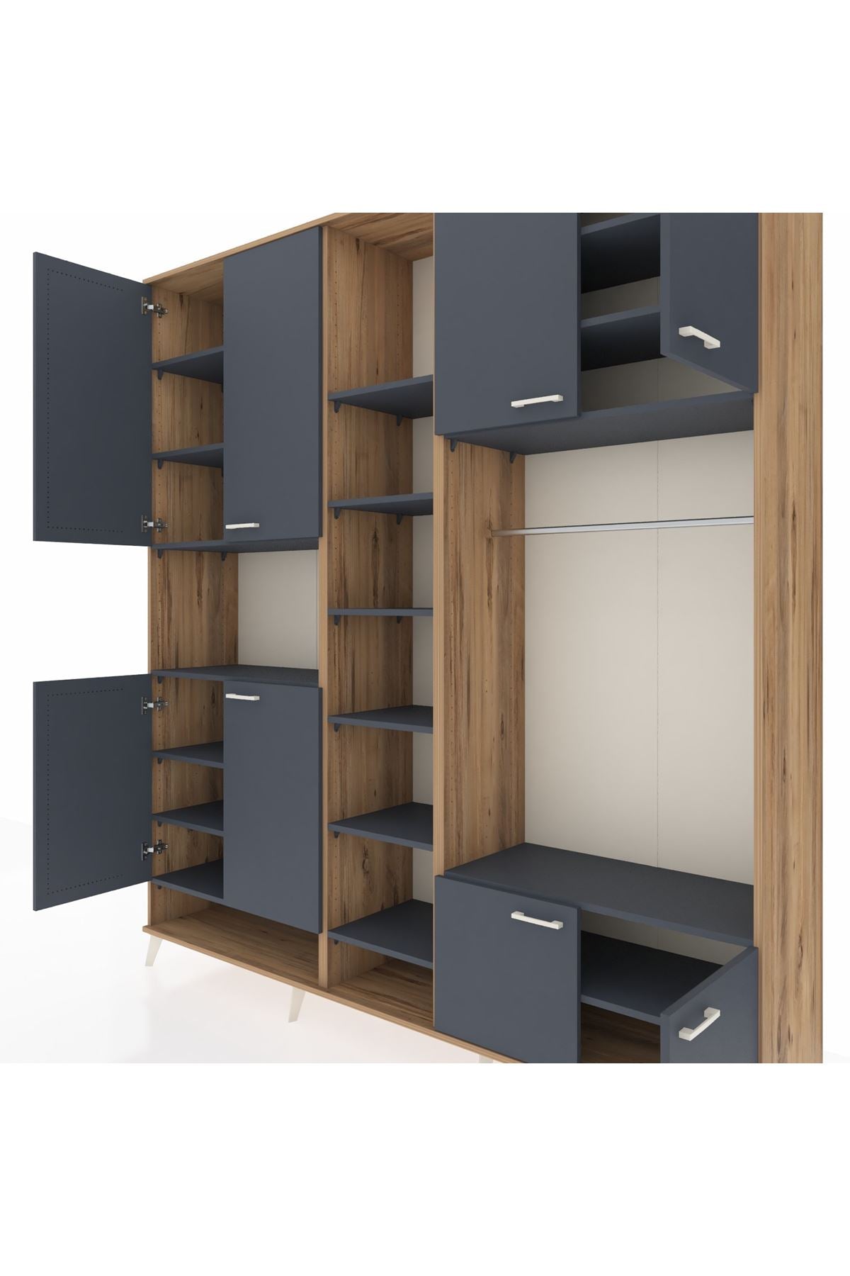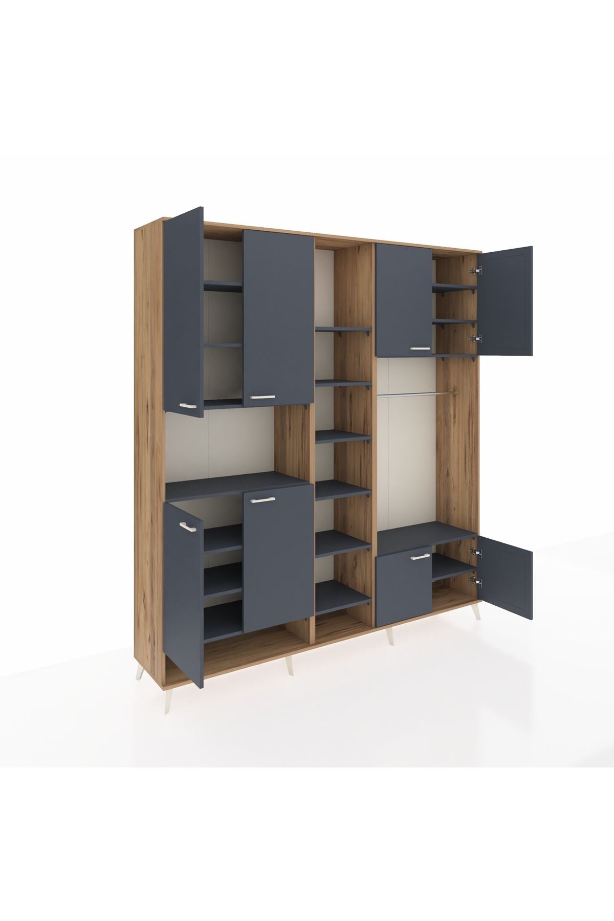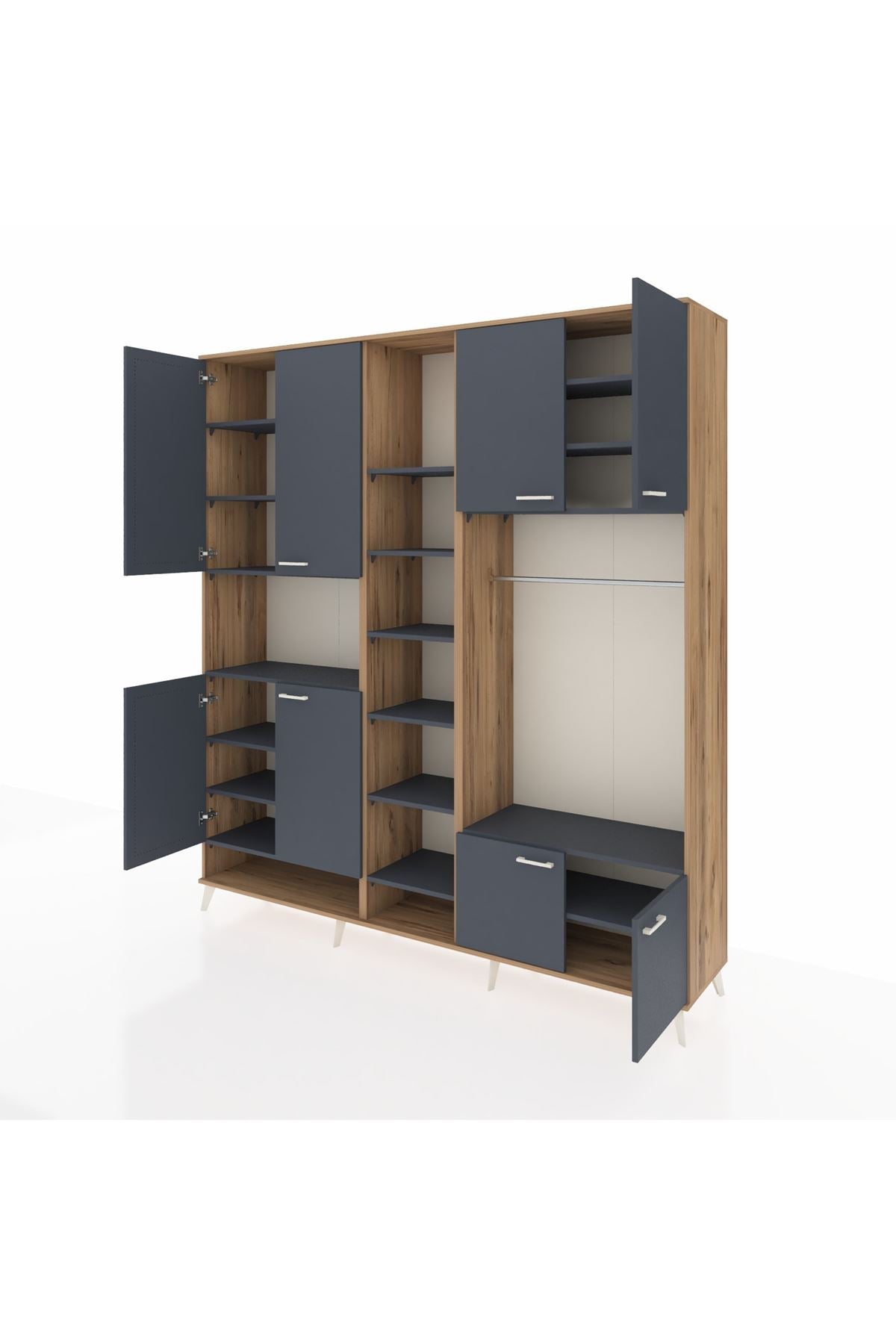 Hyperion Dolap 18 Raflı 8 Kapaklı Tek Askılı 220x44x243 Çam-Antrasit/Antrasit