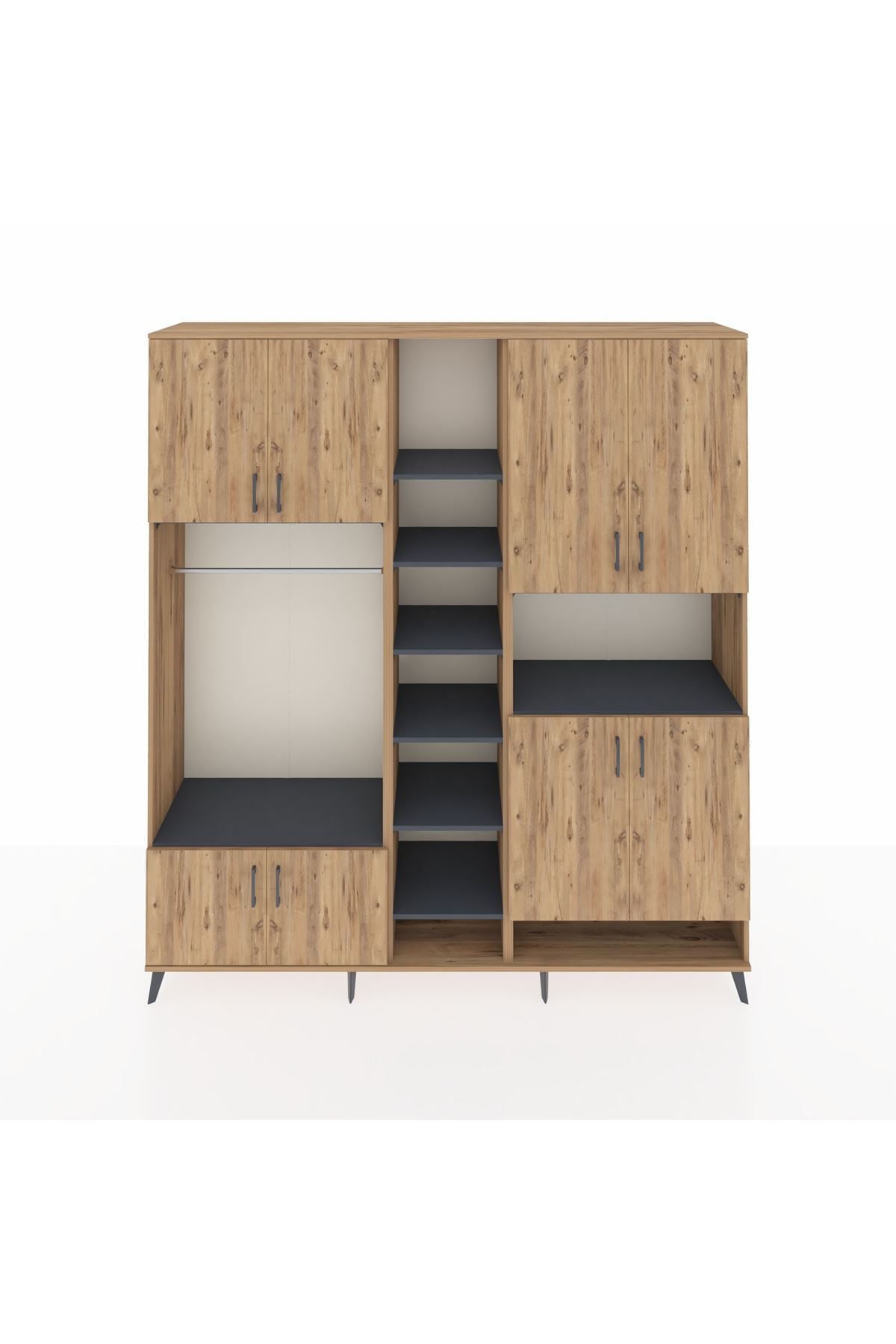 Hyperion Dolap 18 Raflı 8 Kapaklı Tek Askılı 220x44x243 Çam-Çam/Antrasit