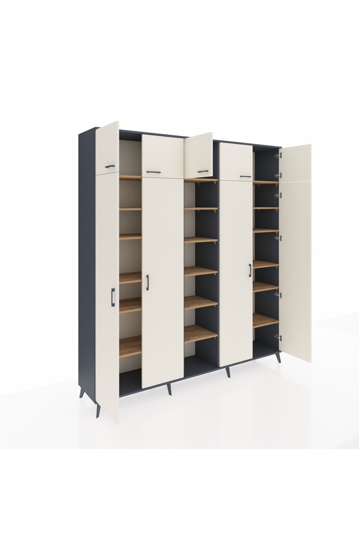 Hyperion Dolap 18 Raflı 9 Kapaklı 220x44x243 Antrasit-Aytaşı/Çam