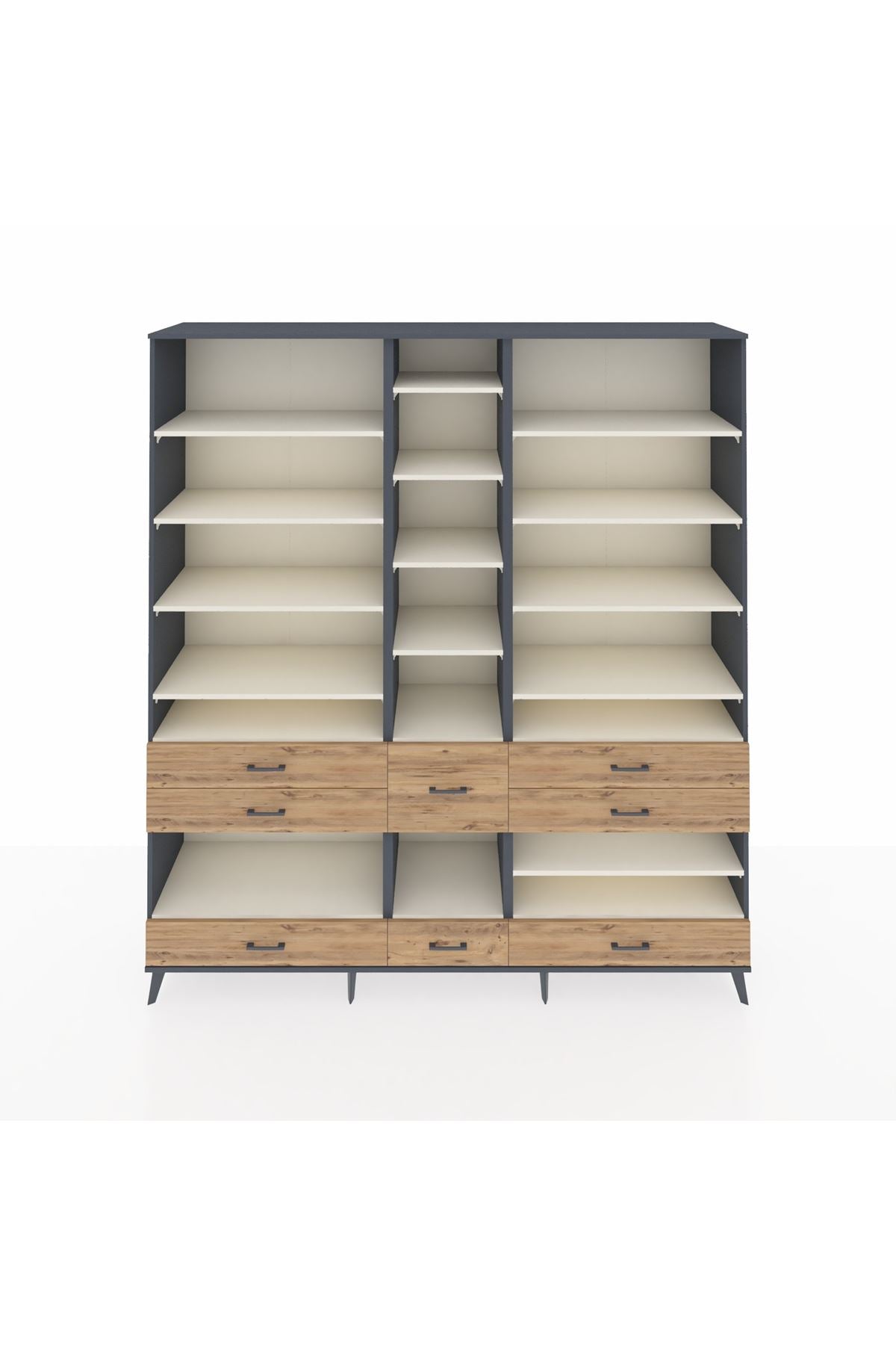 Hyperion Dolap 19 Raflı 8 Çekmeceli 220x44x243 Antrasit-Aytaşı/Çam