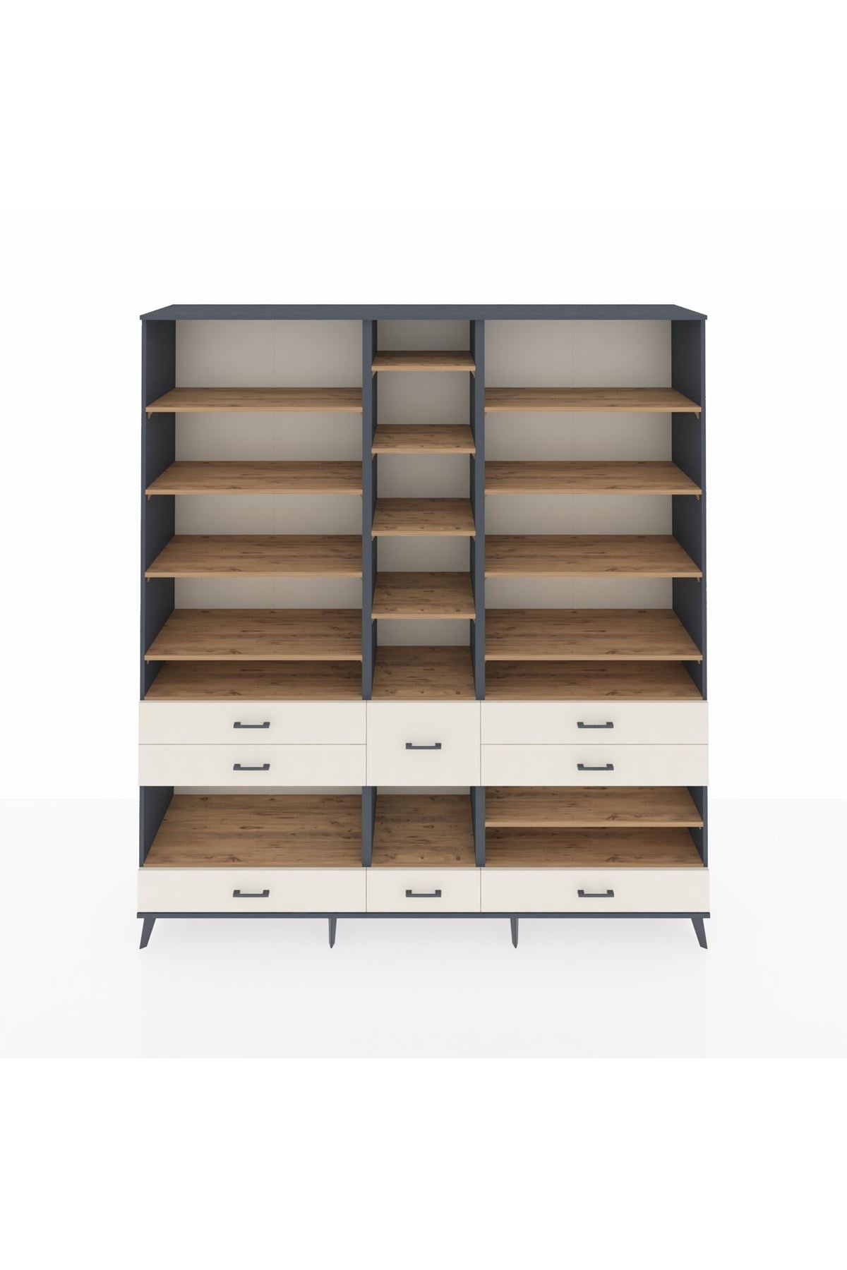 Hyperion Dolap 19 Raflı 8 Çekmeceli 220x44x243 Antrasit-Çam/Aytaşı