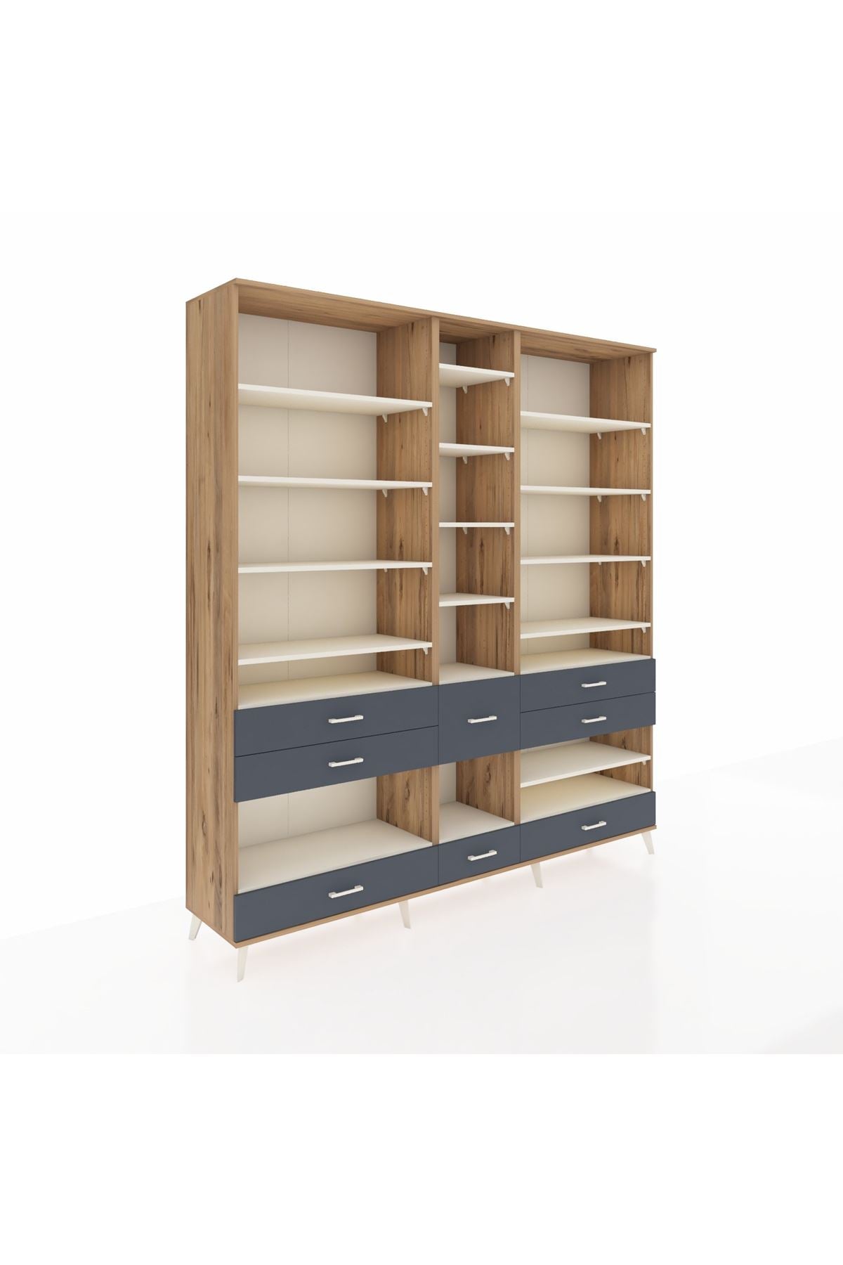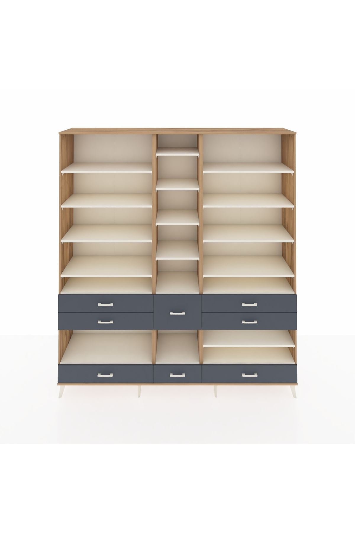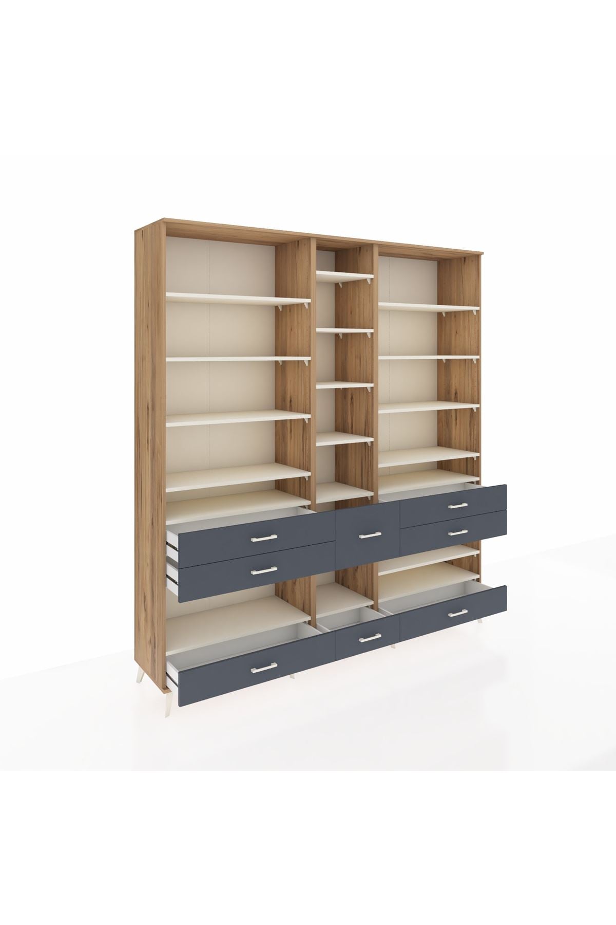 Hyperion Dolap 19 Raflı 8 Çekmeceli 220x44x243 Çam-Aytaşı/Antrasit
