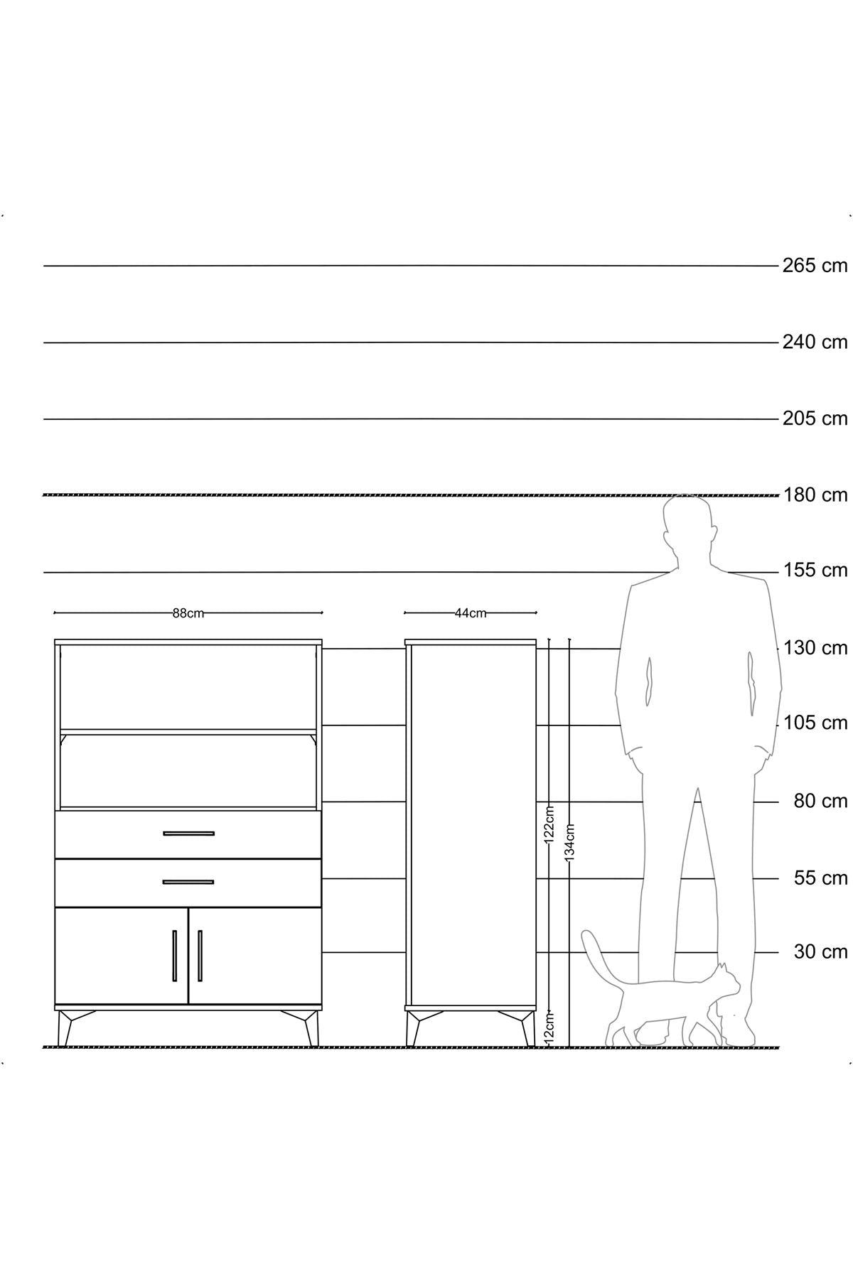 Hyperion Dolap 2 Raflı 2 Çekmeceli 2 Kapaklı 88x44x134 Antrasit-Çam