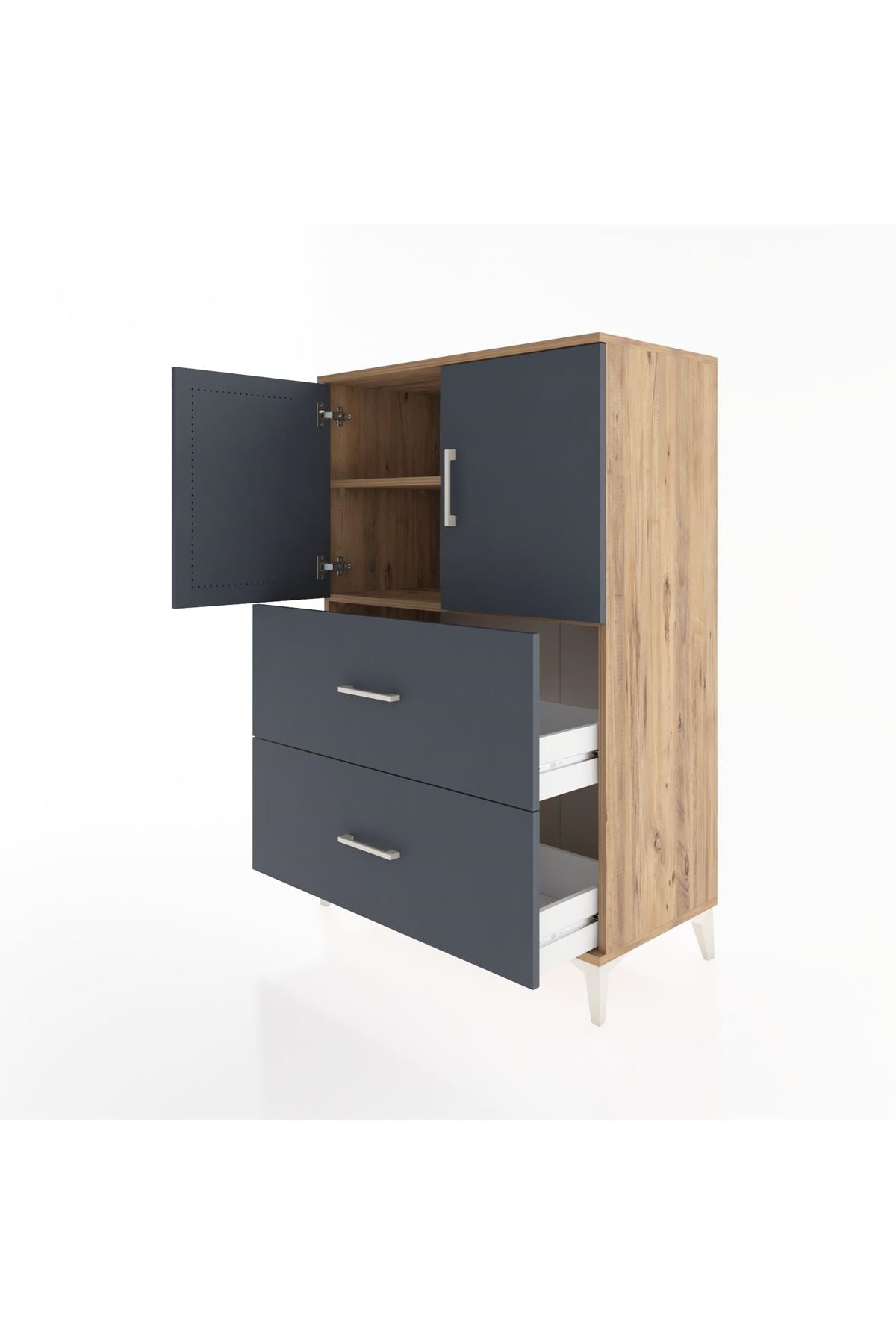 Hyperion Dolap 2 Raflı 2 Çekmeceli 2 Kapaklı 88x44x134 Çam-Antrasit