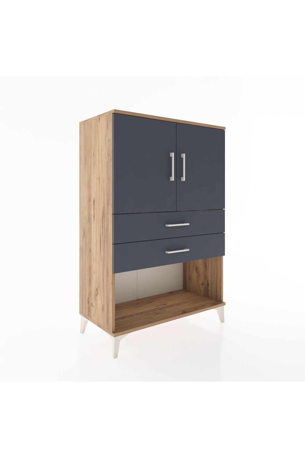 Hyperion Dolap 2 Raflı 2 Çekmeceli 2 Kapaklı 88x44x134 Çam-Antrasit