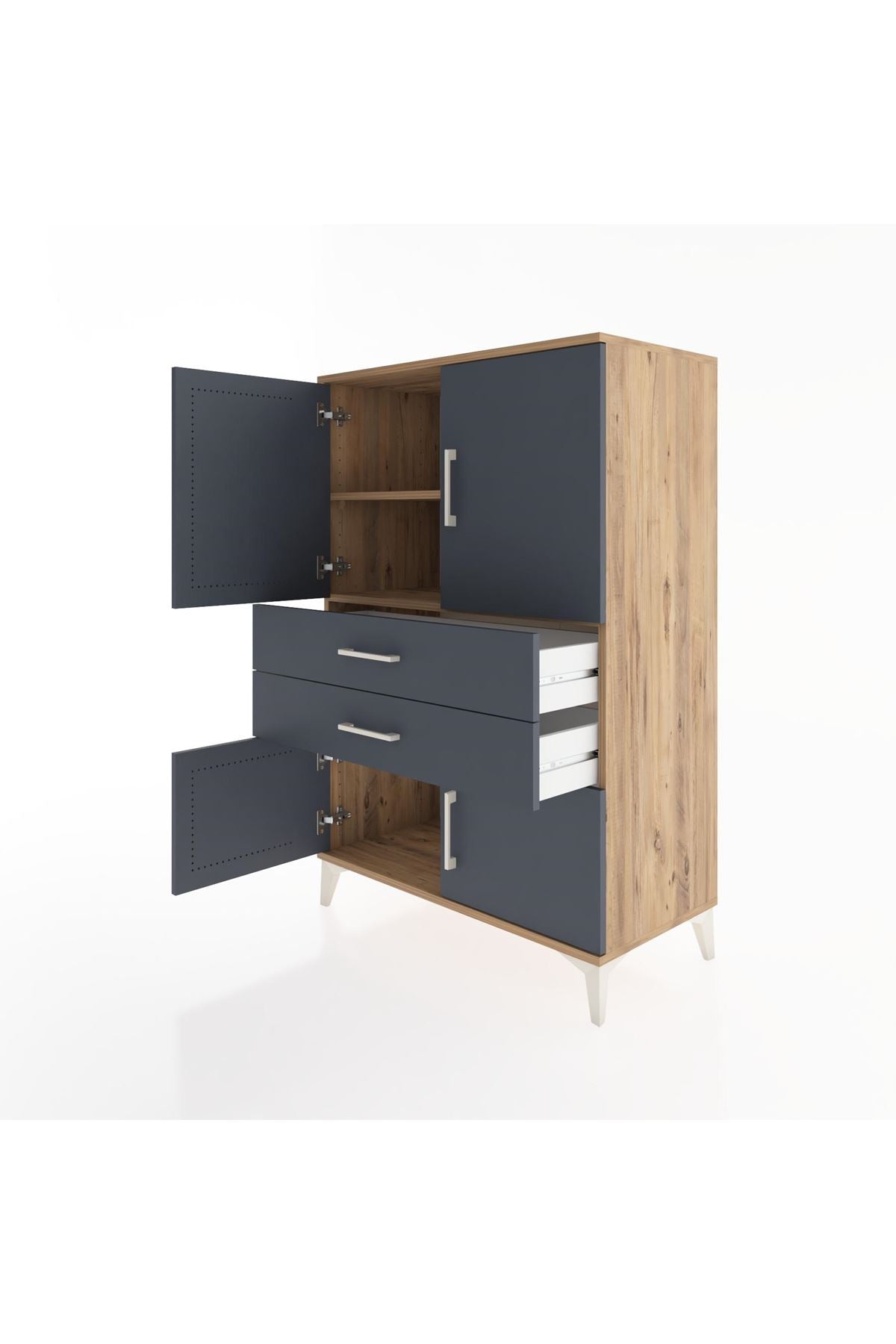 Hyperion Dolap 2 Raflı 2 Çekmeceli 4 Kapaklı 88x44x134 Çam-Antrasit