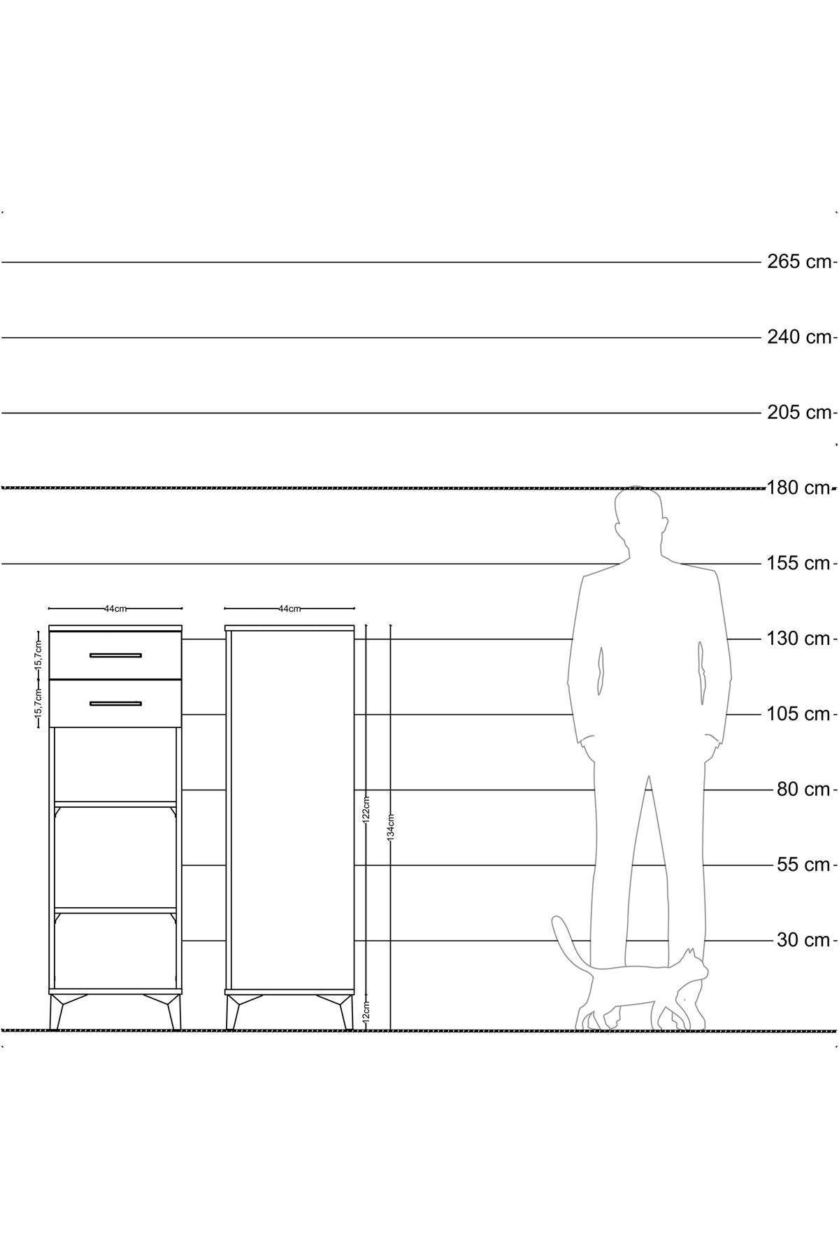 Hyperion Dolap 2 Raflı 2 Çekmeceli 44x44x134 Çam-Antrasit