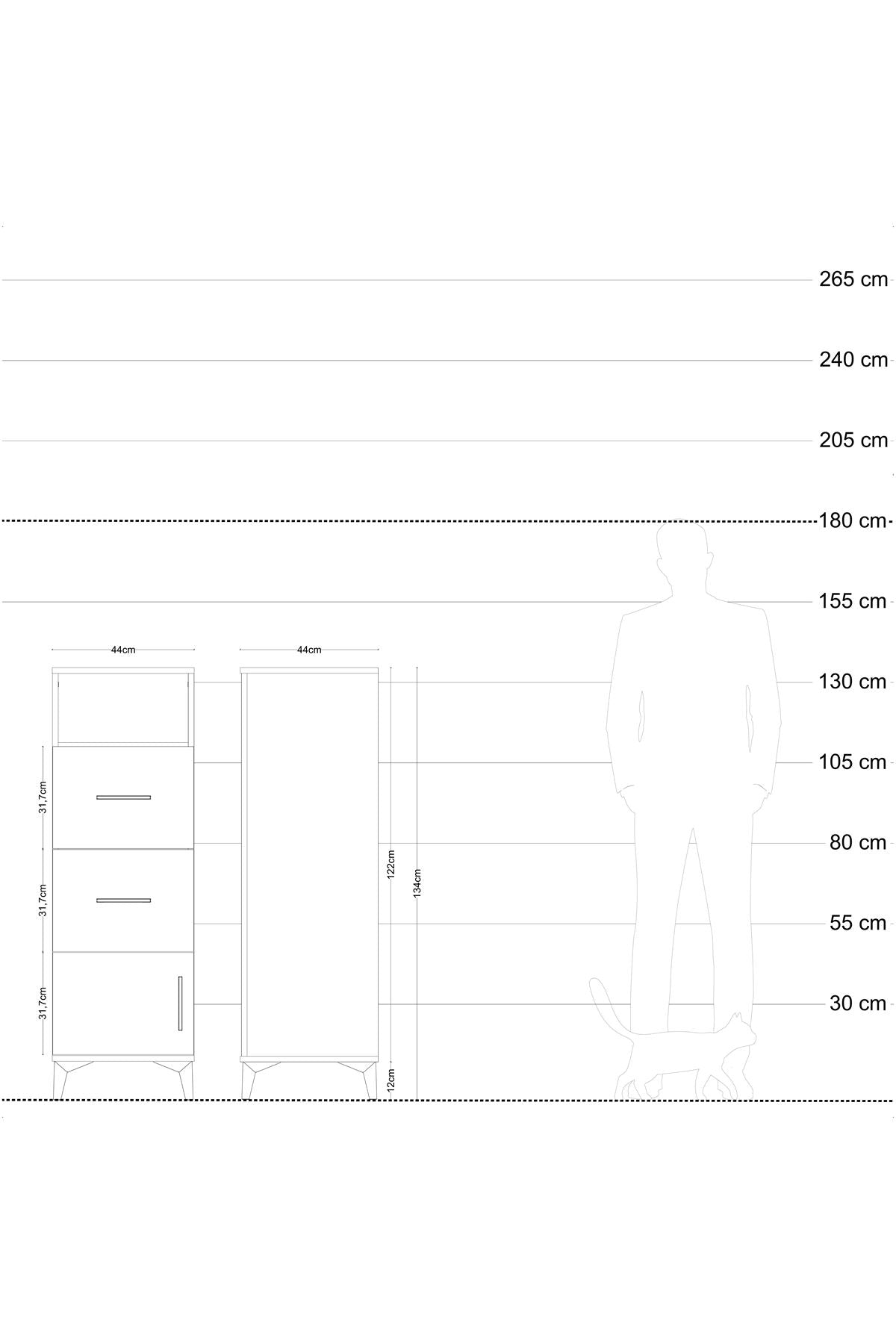 Hyperion Dolap 2 Raflı 2 Çekmeceli 60x44x134 Çam-Antrasit