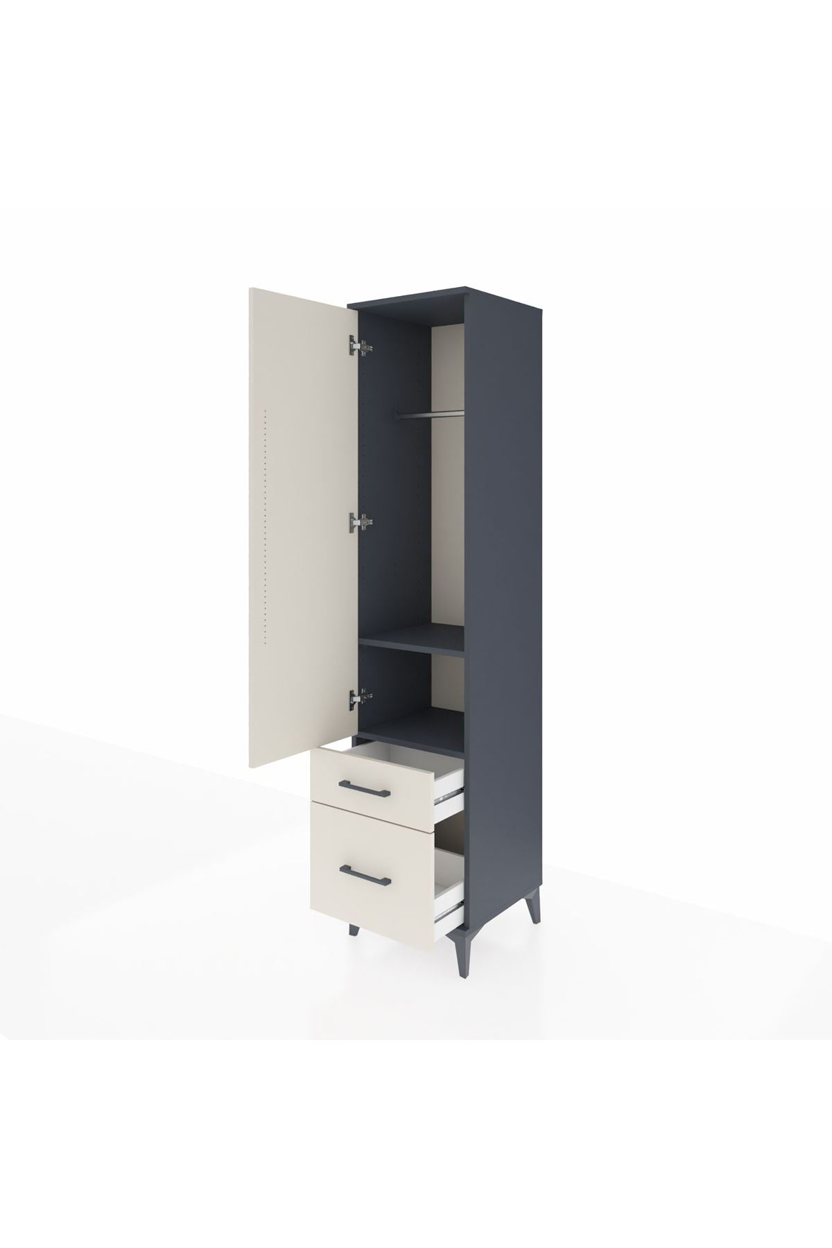 Hyperion Dolap 2 Raflı 2 Çekmeceli Tek Askılı 44x44x195 Antrasit-Aytaşı