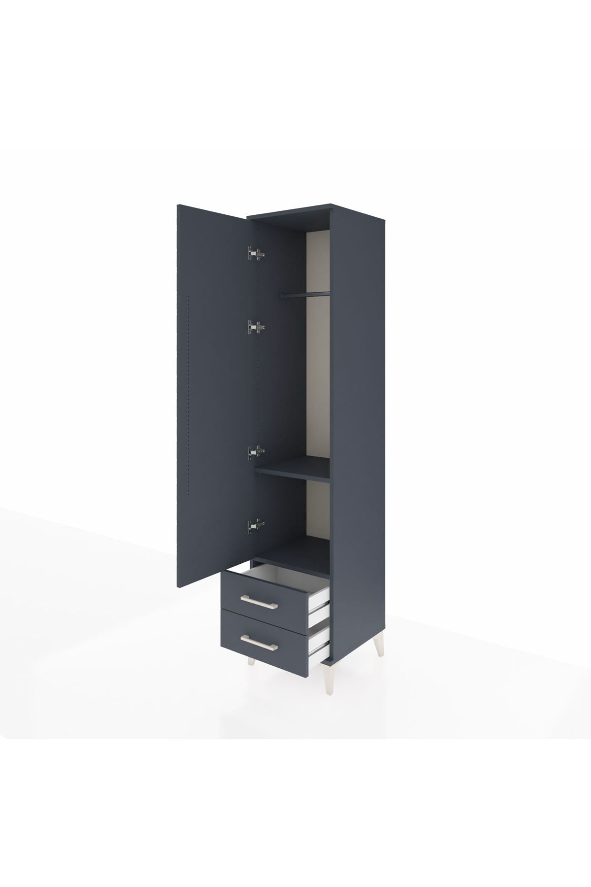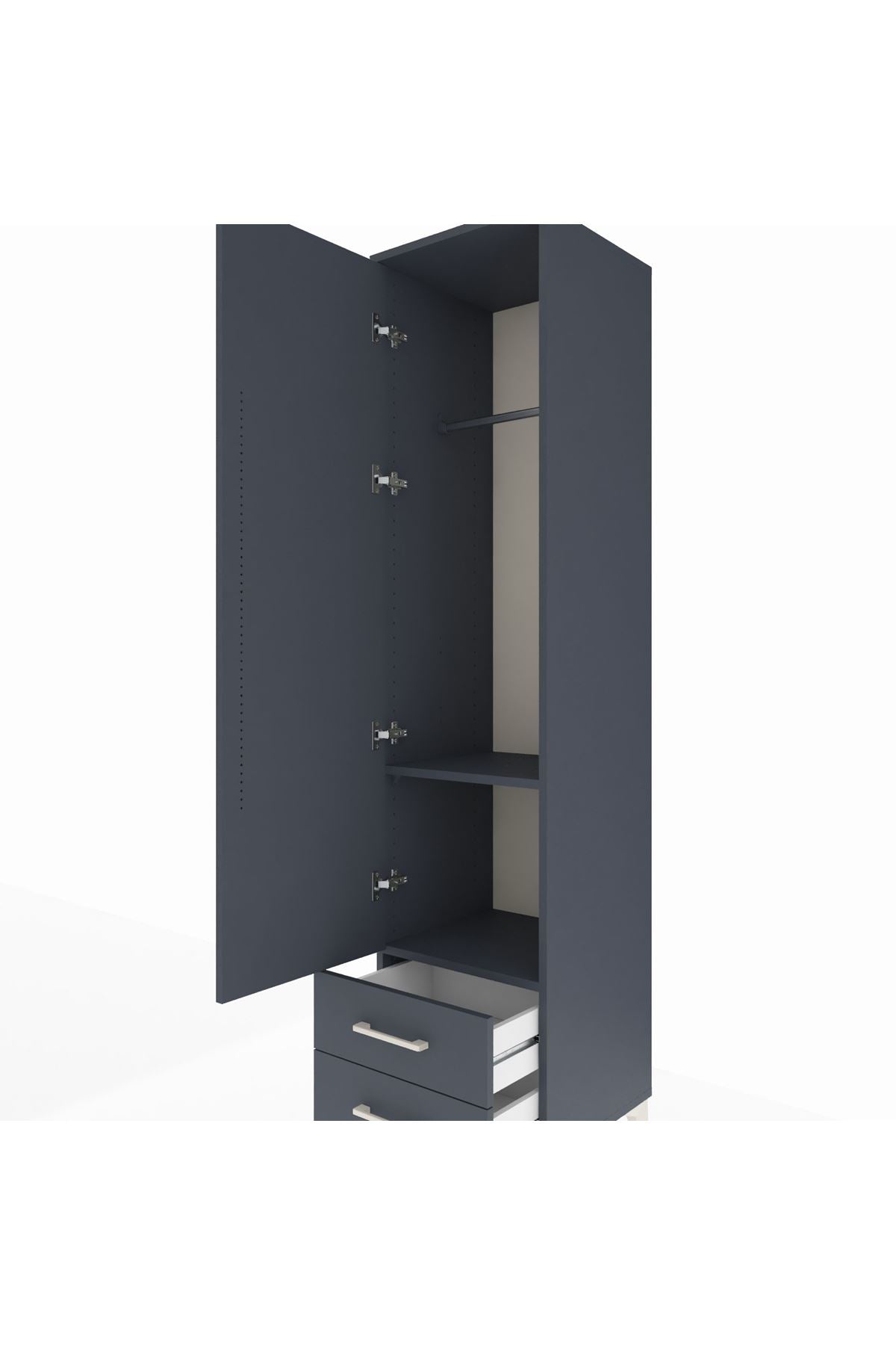 Hyperion Dolap 2 Raflı 2 Çekmeceli Tek Askılı 44x44x195 Antrasit-Antrasit