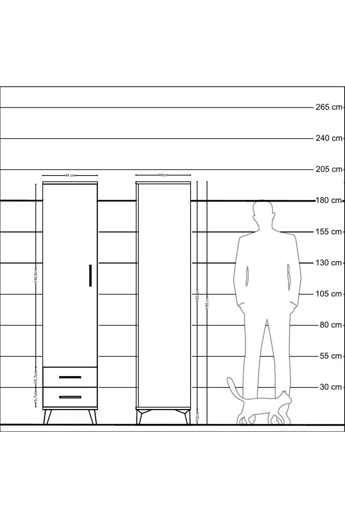 Hyperion Dolap 2 Raflı 2 Çekmeceli Tek Askılı 44x44x195 Aytaşı-Antrasit