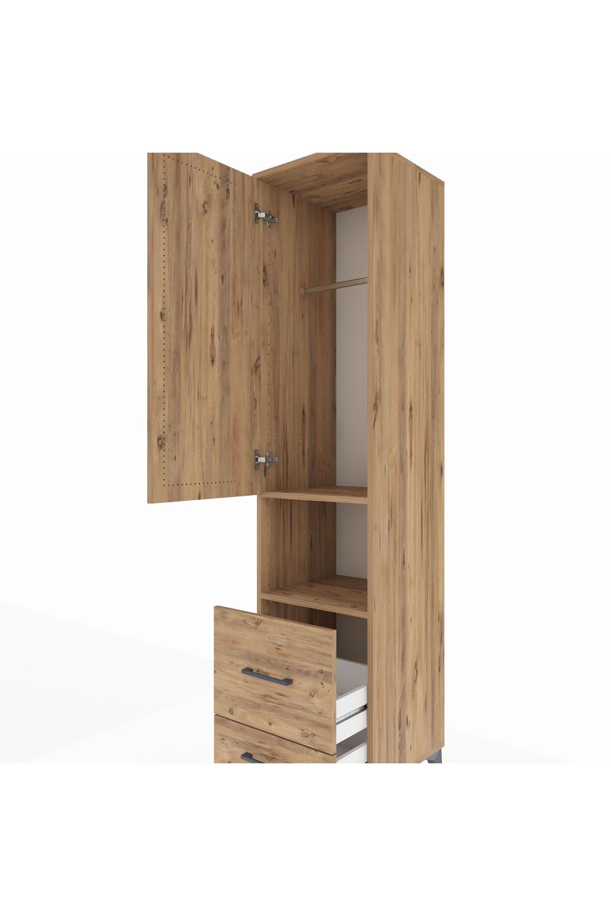 Hyperion Dolap 2 Raflı 2 Çekmeceli Tek Askılı 44x44x195 Çam-Çam
