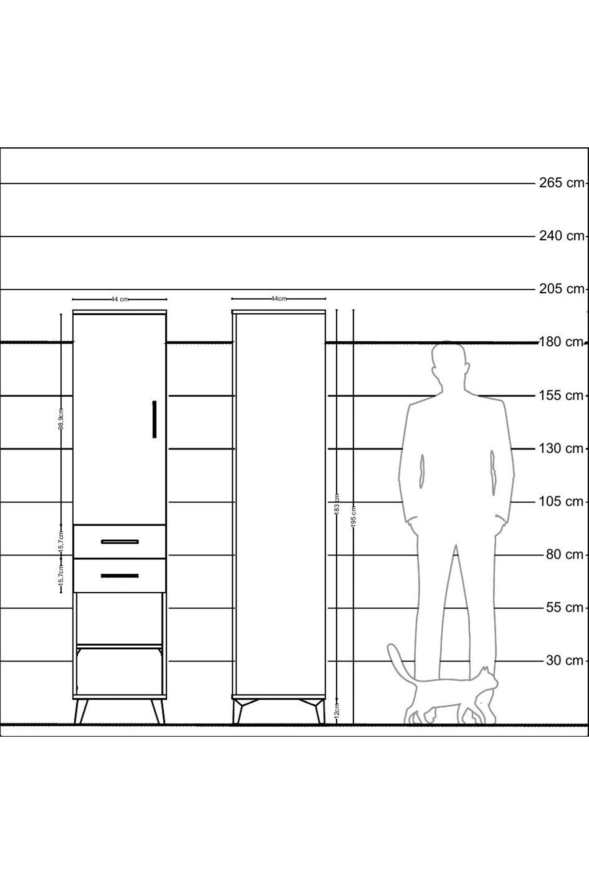 Hyperion Dolap 2 Raflı 2 Çekmeceli Tek Askılı 44x44x195 Çam-Çam