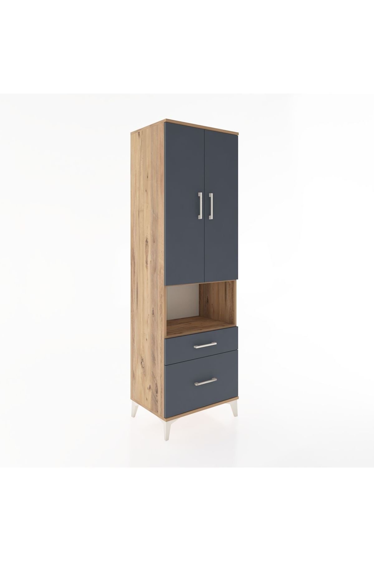 Hyperion Dolap 2 Raflı 2 Çekmeceli Tek Askılı 60x44x195 Çam-Antrasit