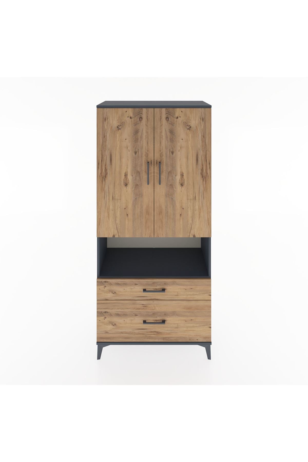 Hyperion Dolap 2 Raflı 2 Çekmeceli Tek Askılı 88x44x195 Antrasit-Çam