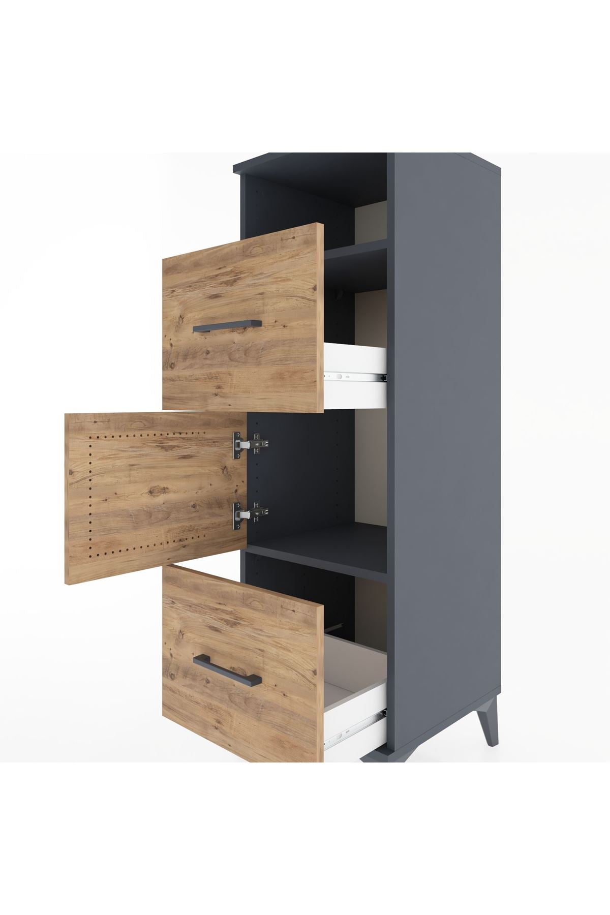 Hyperion Dolap 2 Raflı 2 Çekmeceli Tek Kapaklı 44x44x134 Antrasit-Çam