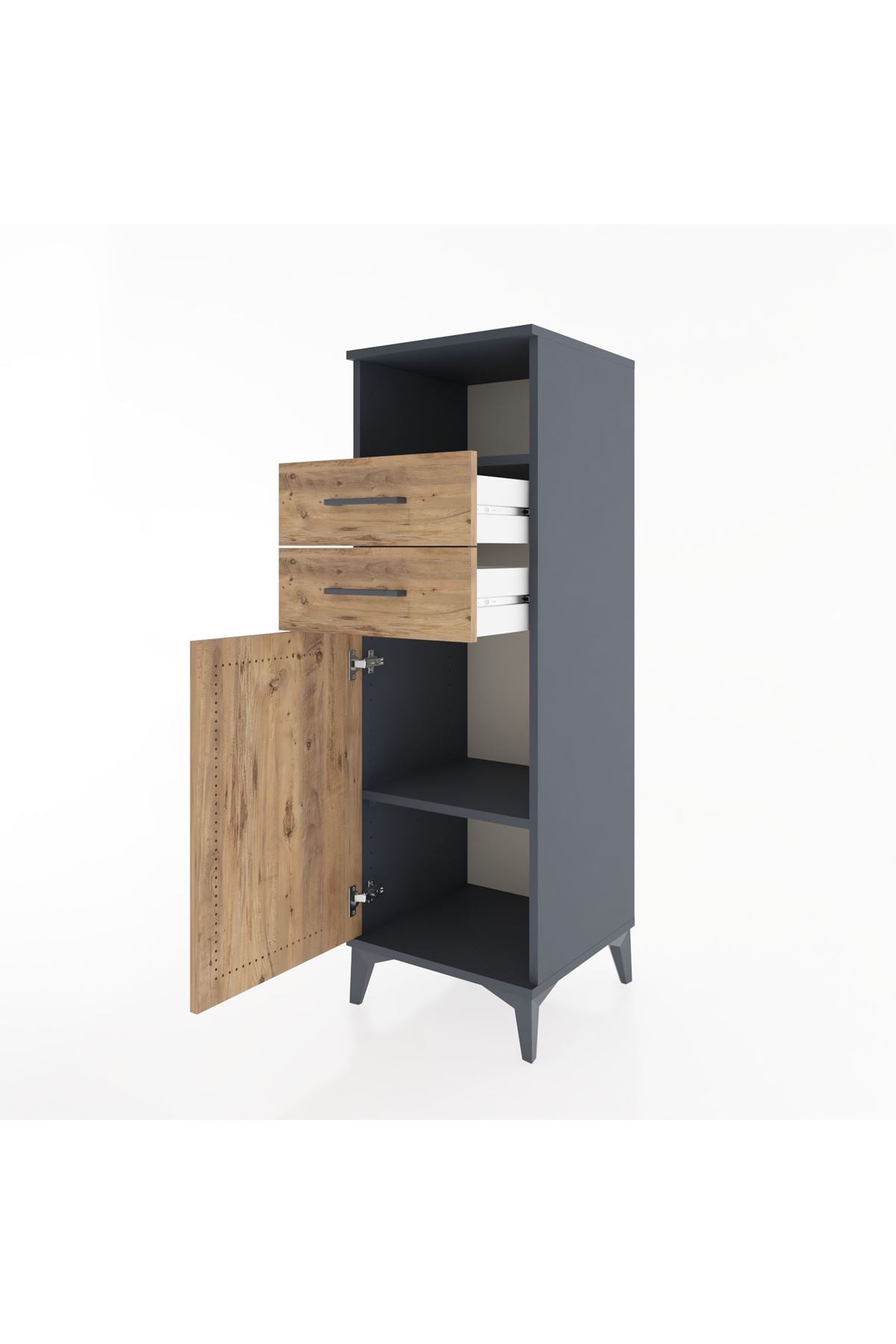 Hyperion Dolap 2 Raflı 2 Çekmeceli Tek Kapaklı 44x44x134 Antrasit-Çam