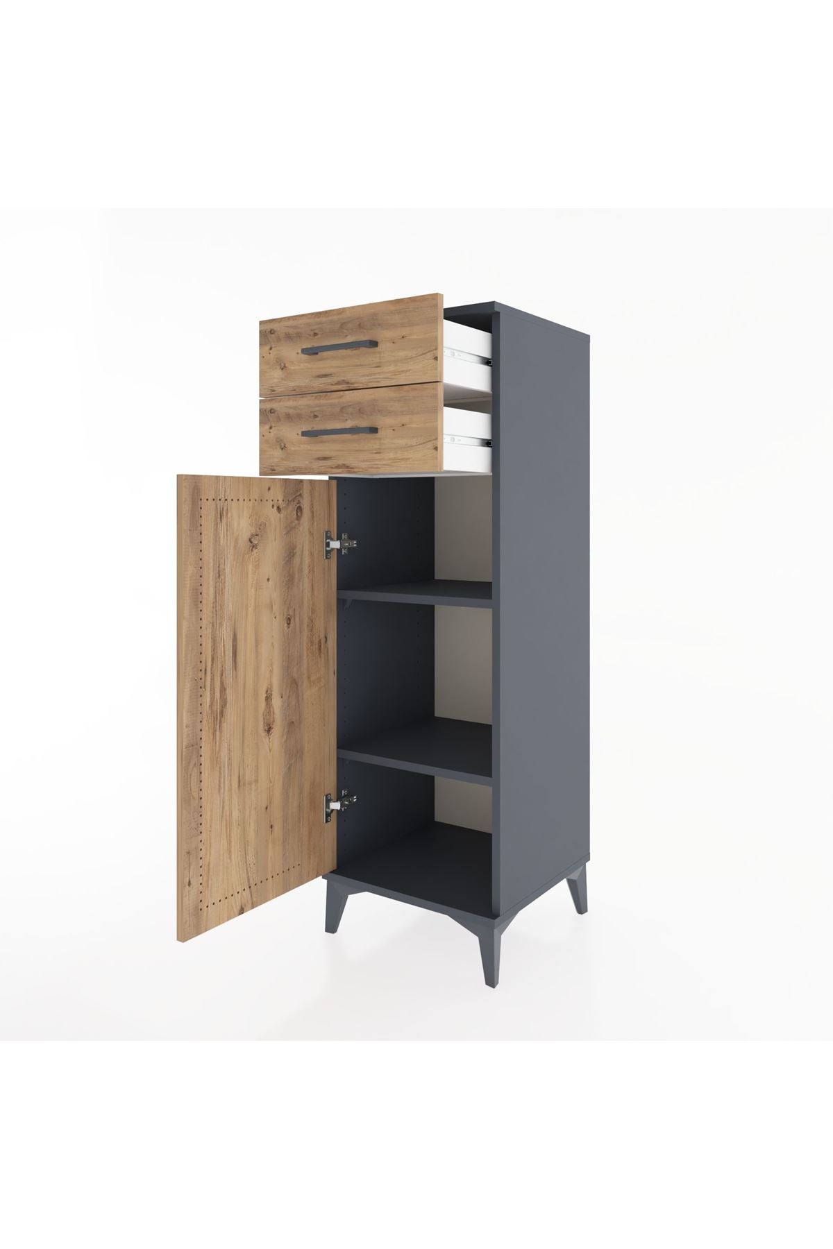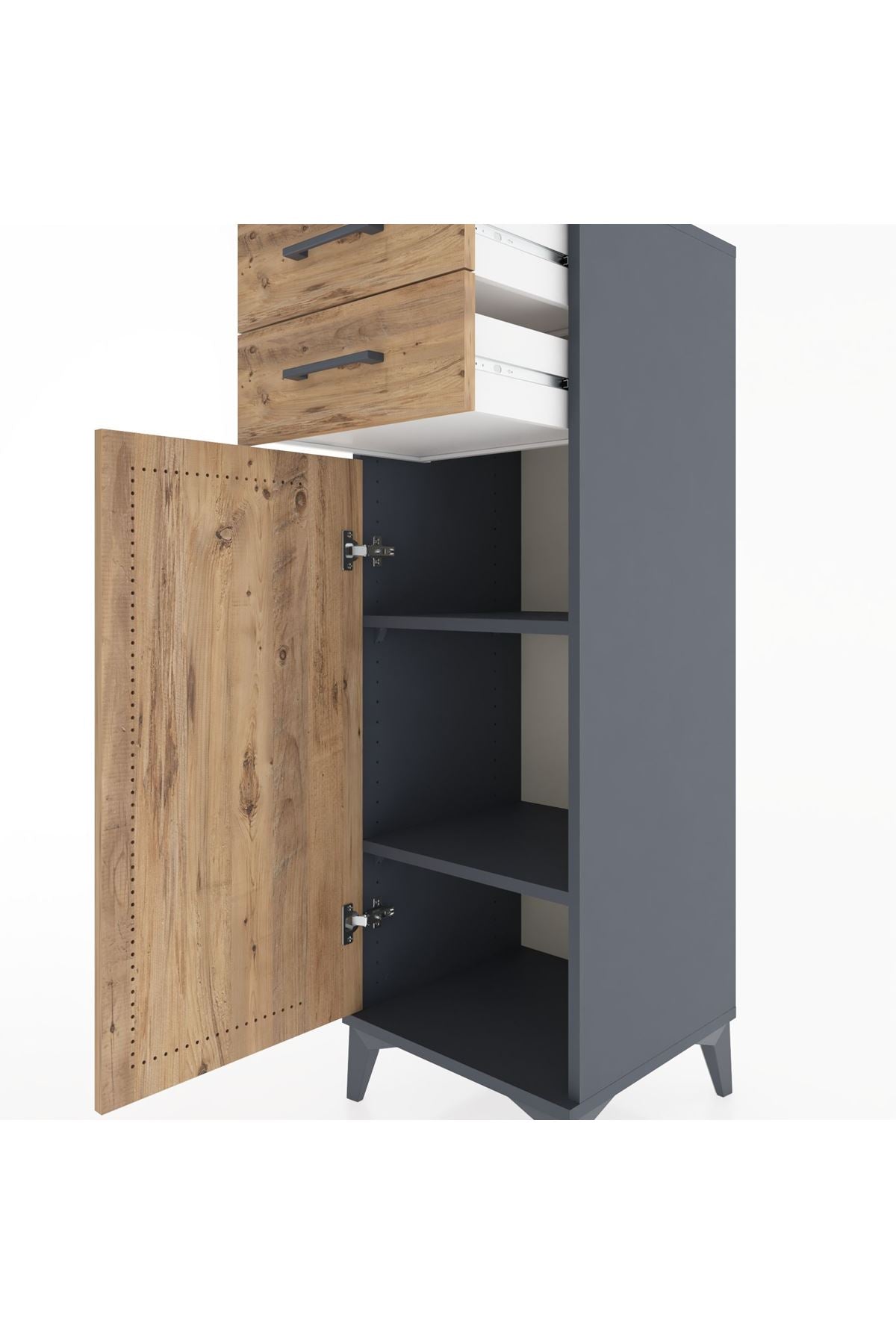 Hyperion Dolap 2 Raflı 2 Çekmeceli Tek Kapaklı 44x44x134 Antrasit-Çam