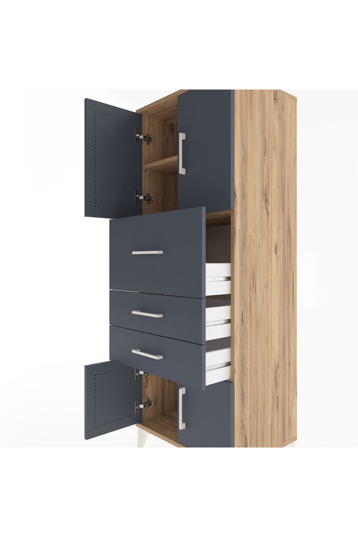Hyperion Dolap 2 Raflı 3 Çekmeceli 4 Kapaklı 60x44x163 Çam-Antrasit