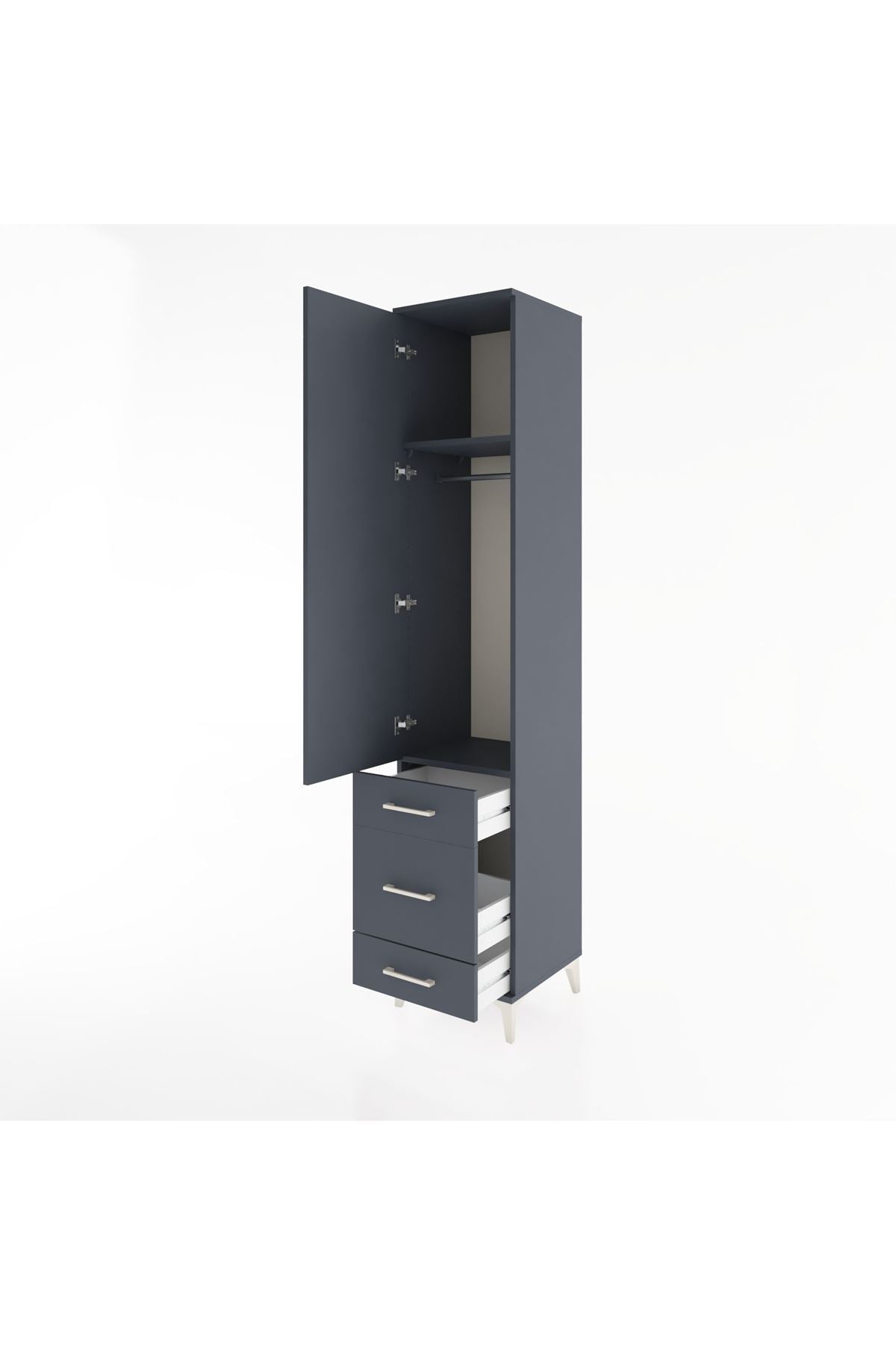 Hyperion Dolap 2 Raflı 3 Çekmeceli Tek Askılı 44x44x221 Antrasit-Antrasit