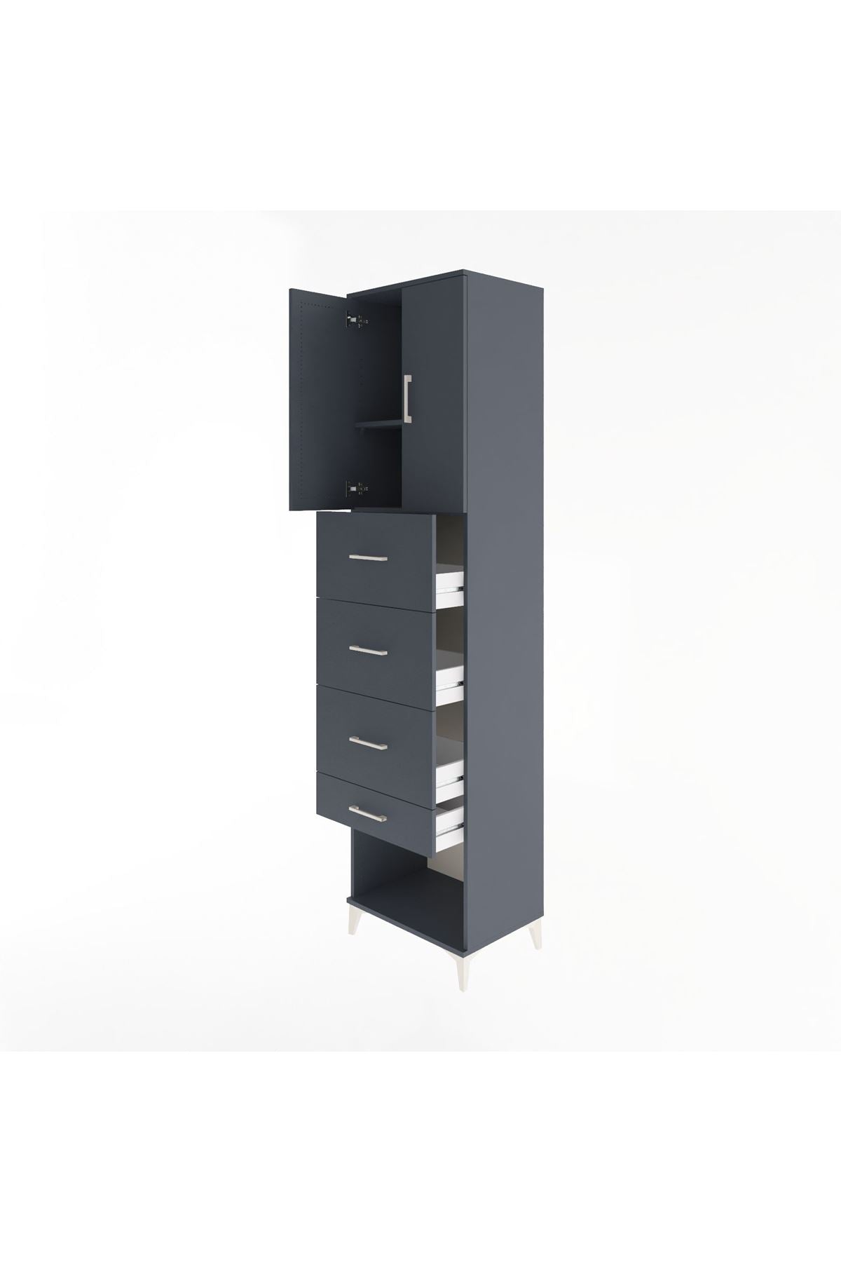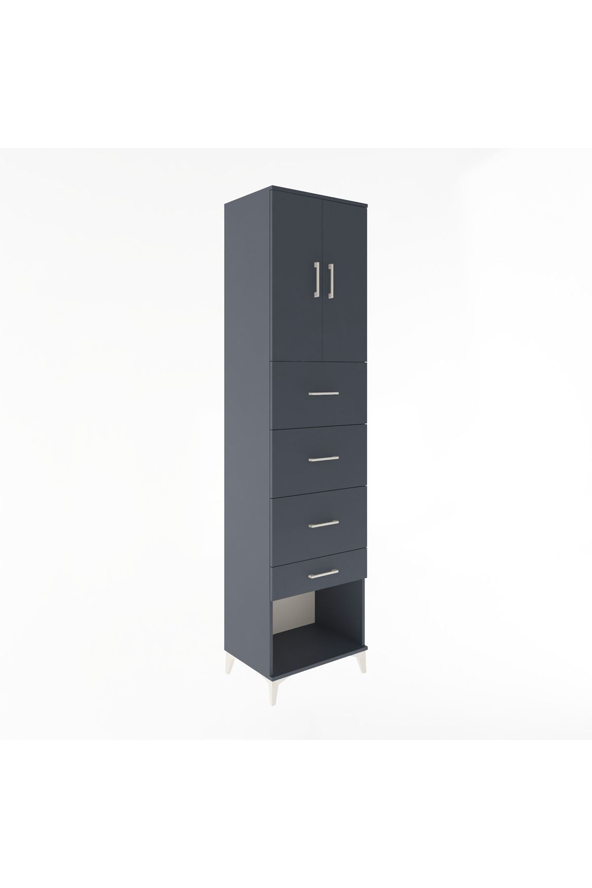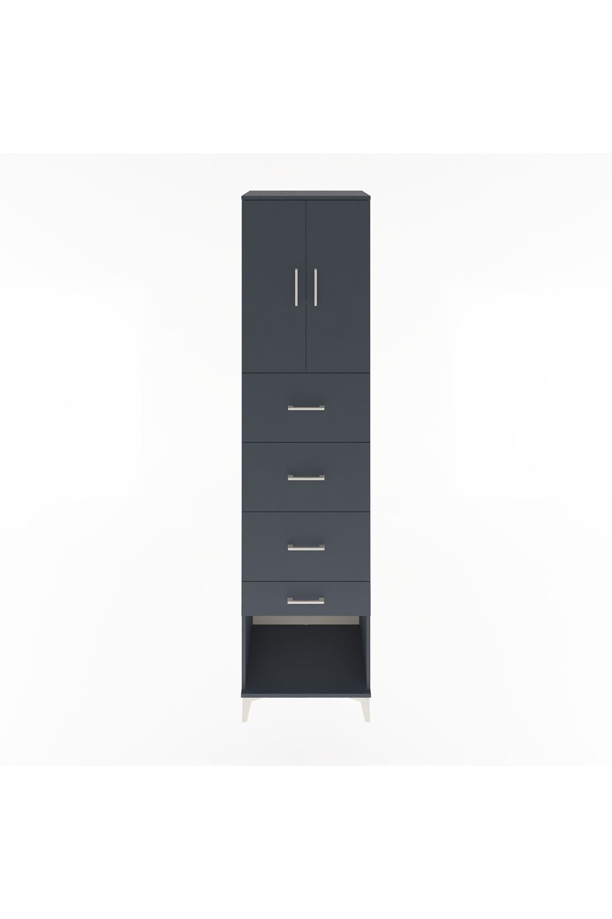 Hyperion Dolap 2 Raflı 4 Çekmeceli 2 Kapaklı 60x44x243 Antrasit-Antrasit