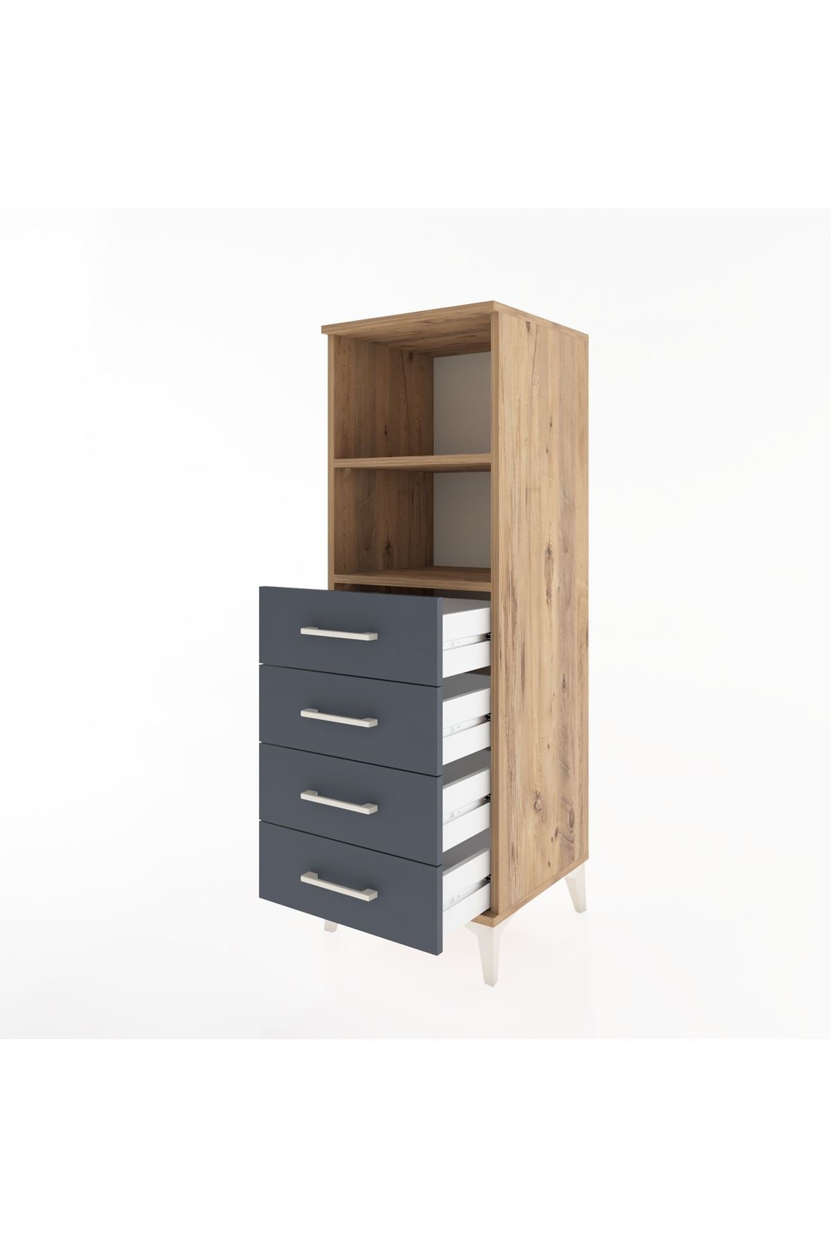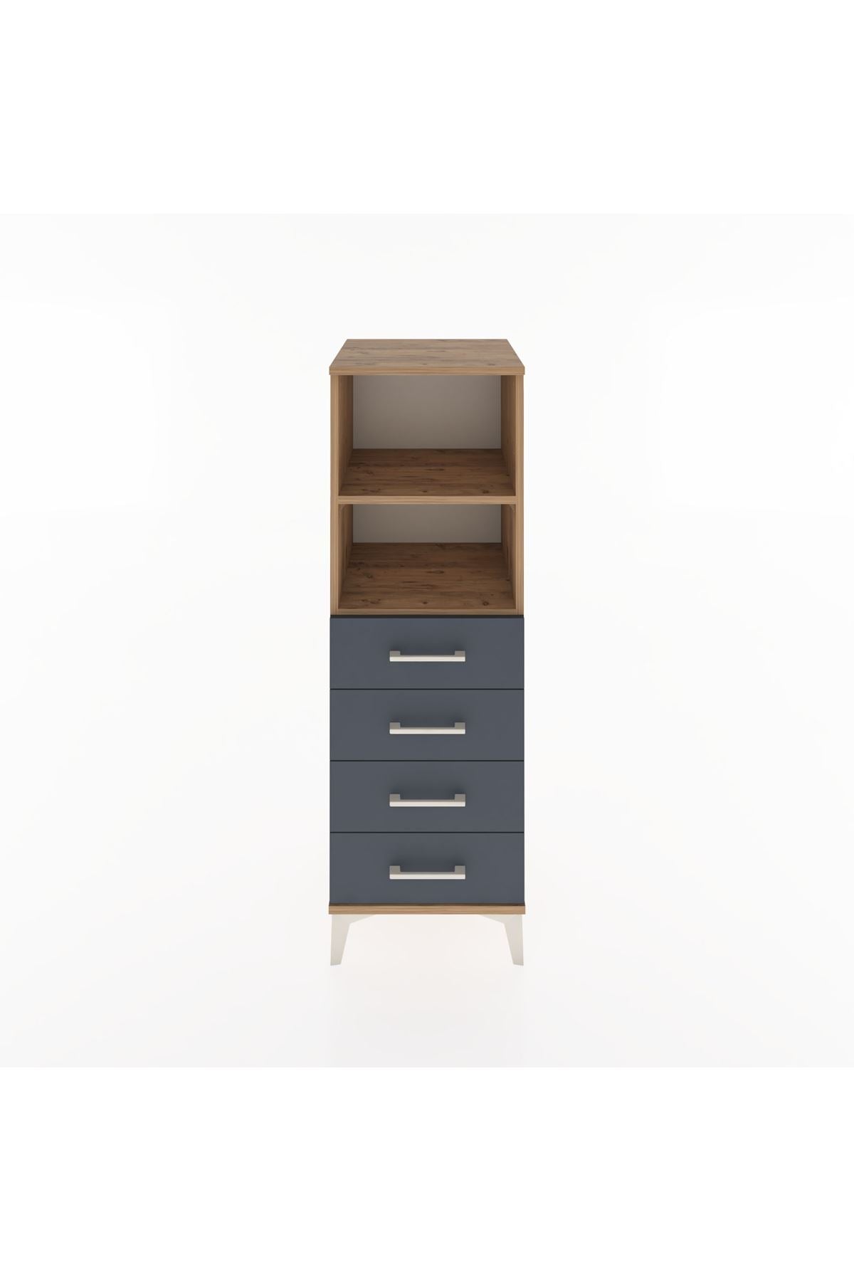 Hyperion Dolap 2 Raflı 4 Çekmeceli 44x44x134 Çam-Antrasit