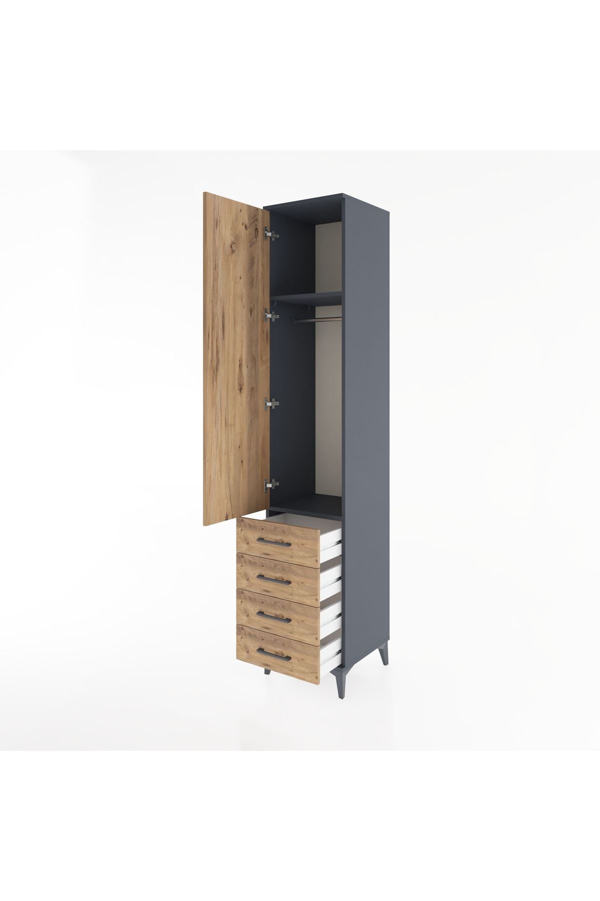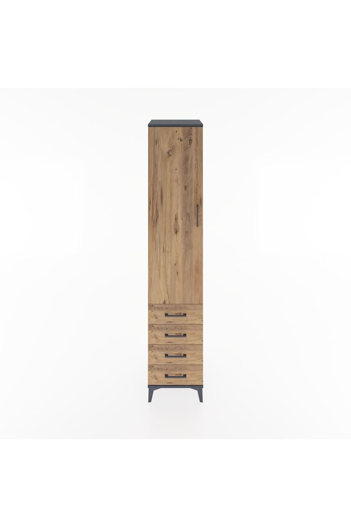 Hyperion Dolap 2 Raflı 4 Çekmeceli Tek Askılı 44x44x221 Antrasit-Çam