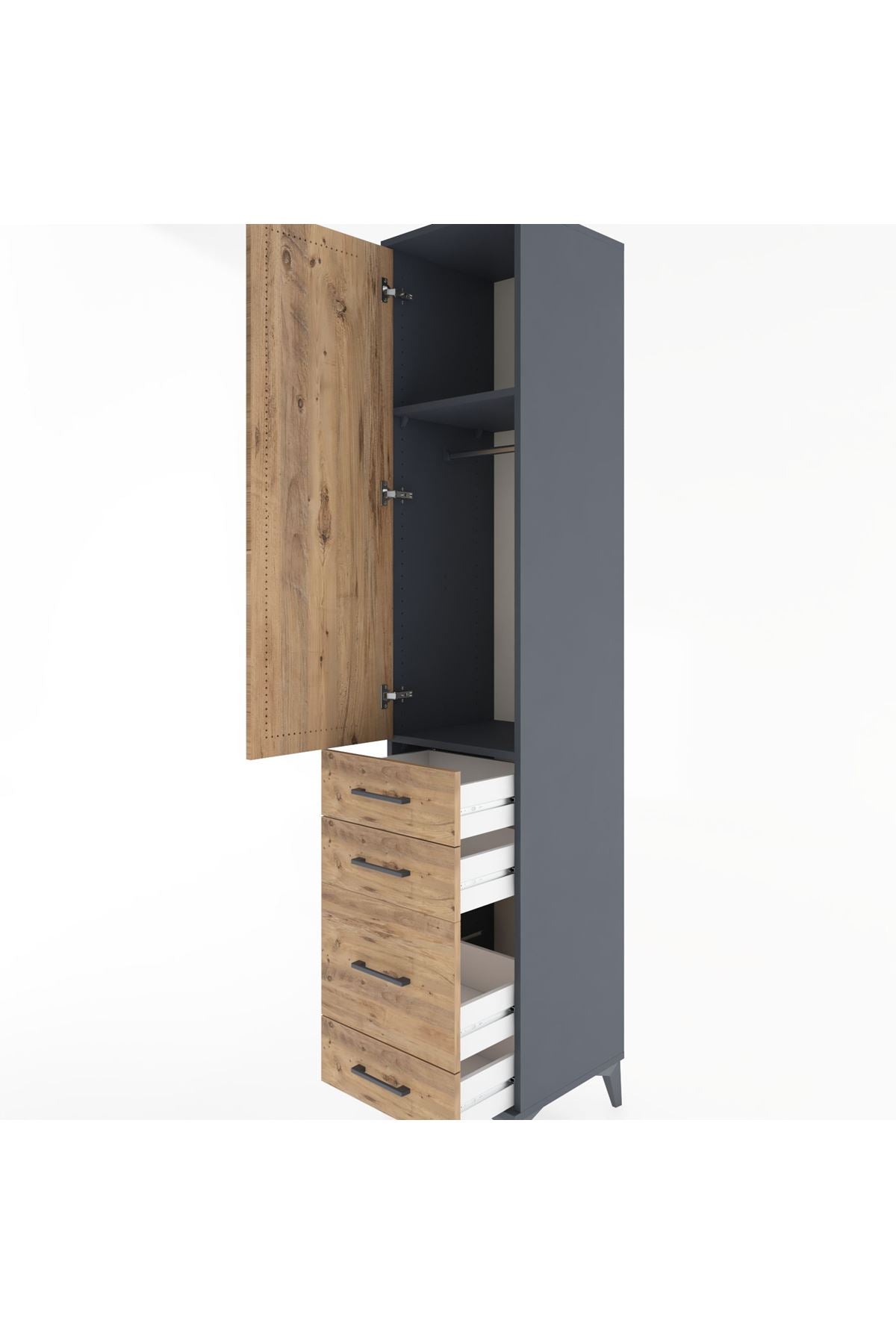 Hyperion Dolap 2 Raflı 4 Çekmeceli Tek Askılı 44x44x221 Antrasit-Çam