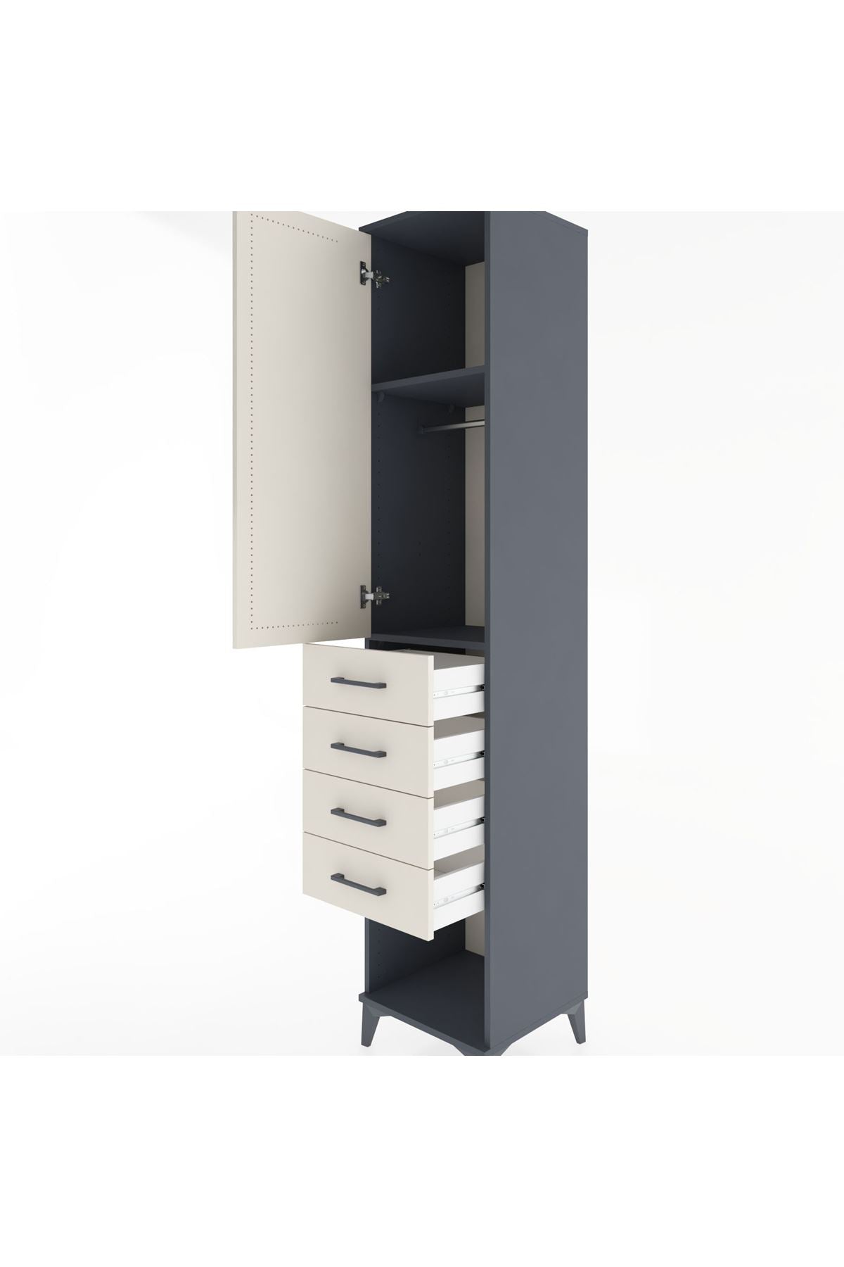 Hyperion Dolap 2 Raflı 4 Çekmeceli Tek Askılı 44x44x221 Antrasit-Aytaşı