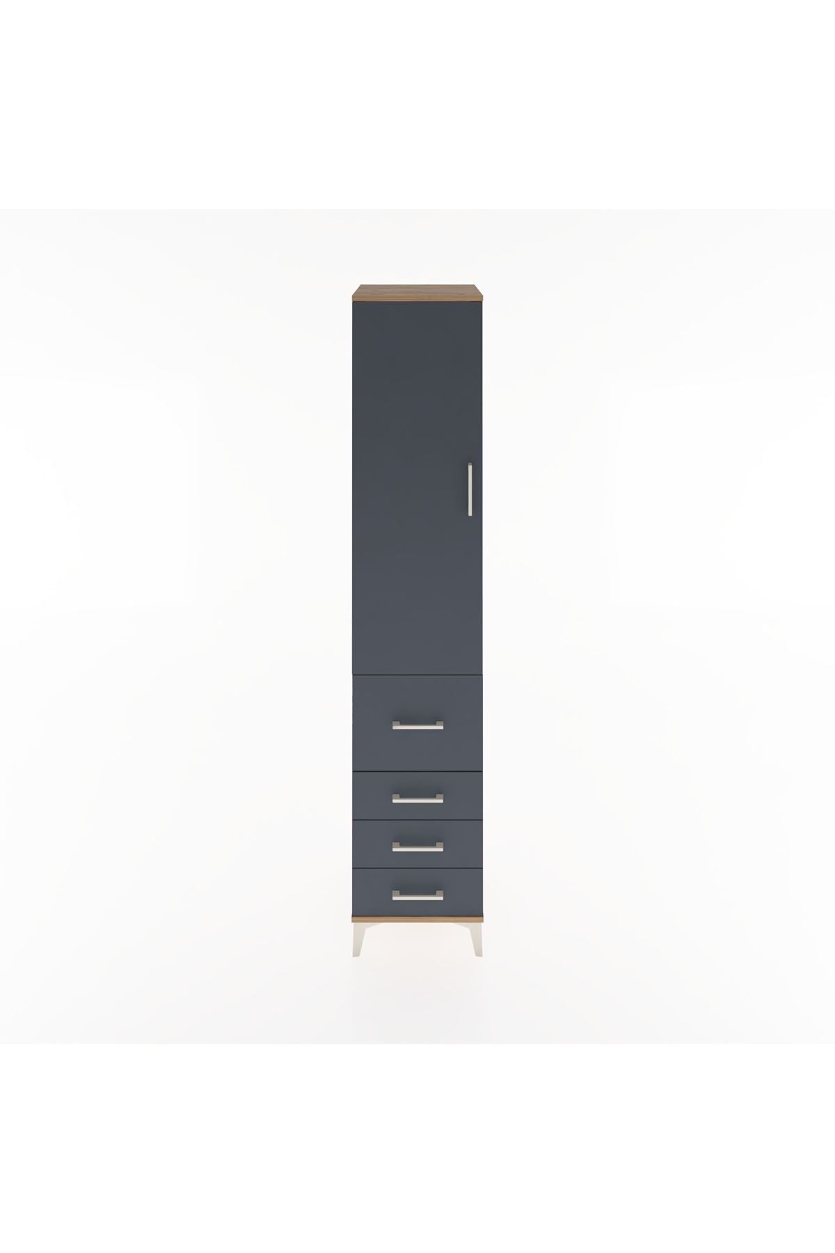 Hyperion Dolap 2 Raflı 4 Çekmeceli Tek Askılı 44x44x221 Çam-Antrasit