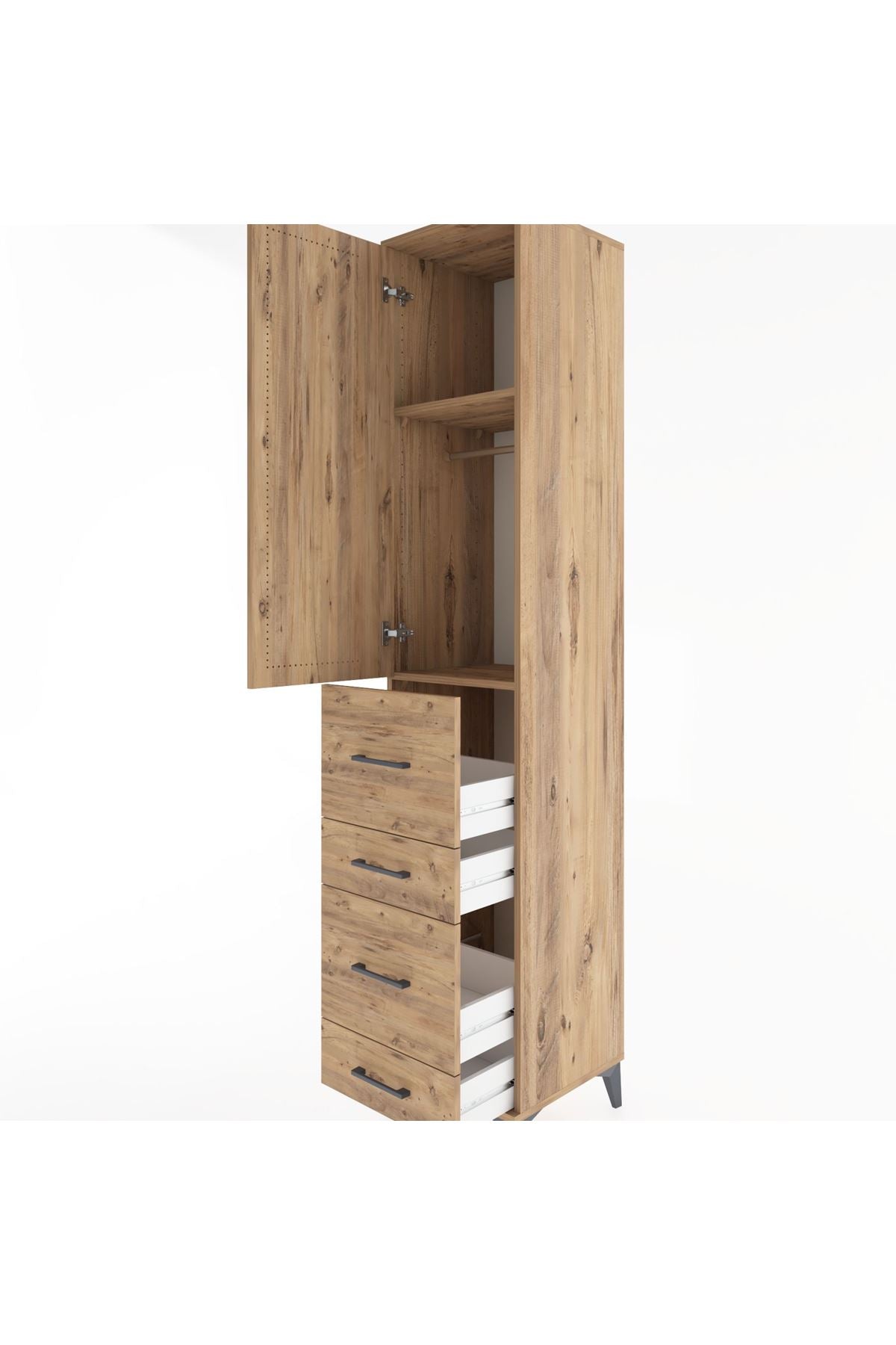 Hyperion Dolap 2 Raflı 4 Çekmeceli Tek Askılı 44x44x221 Çam-Çam
