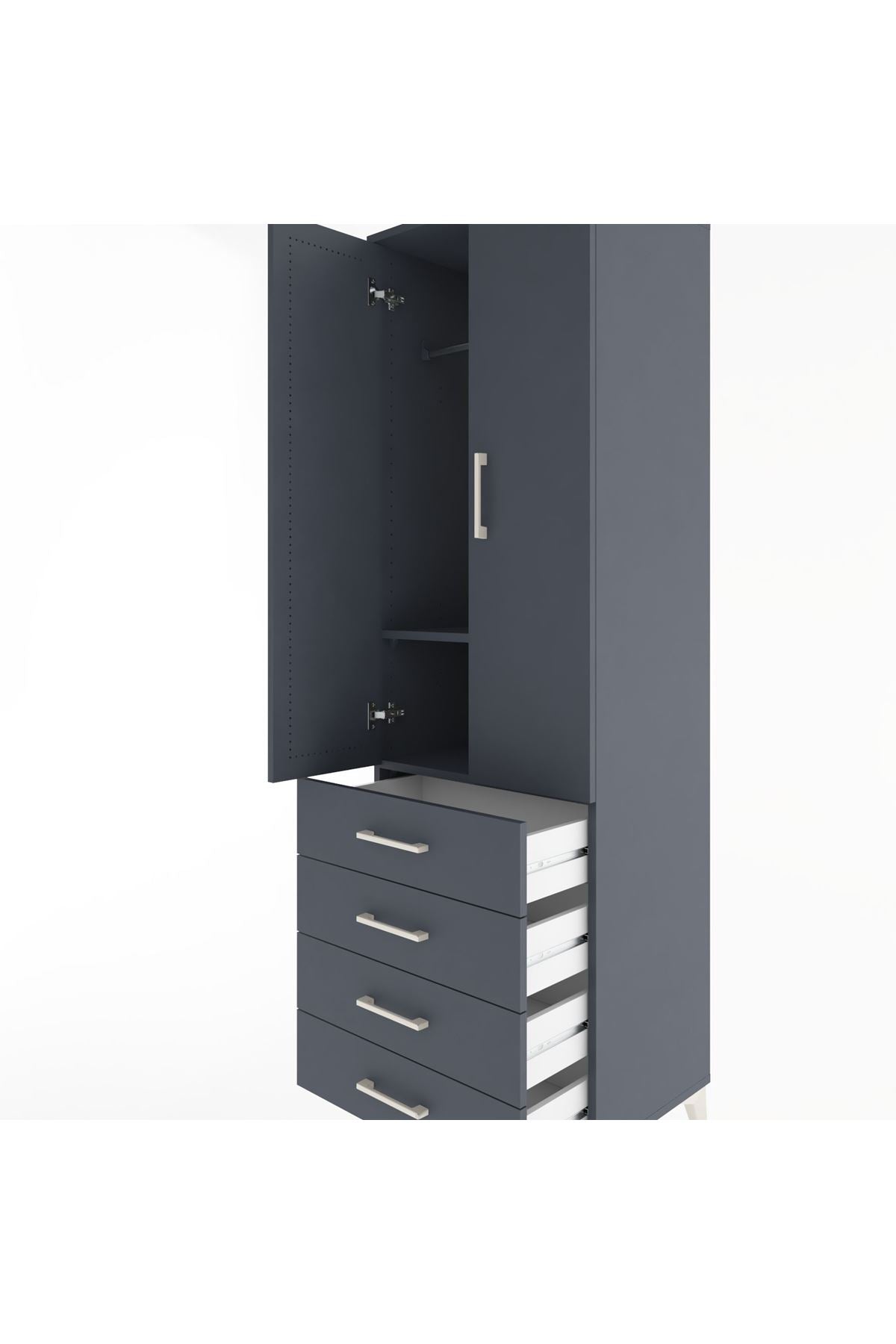 Hyperion Dolap 2 Raflı 4 Çekmeceli Tek Askılı 60x44x195 Antrasit-Antrasit